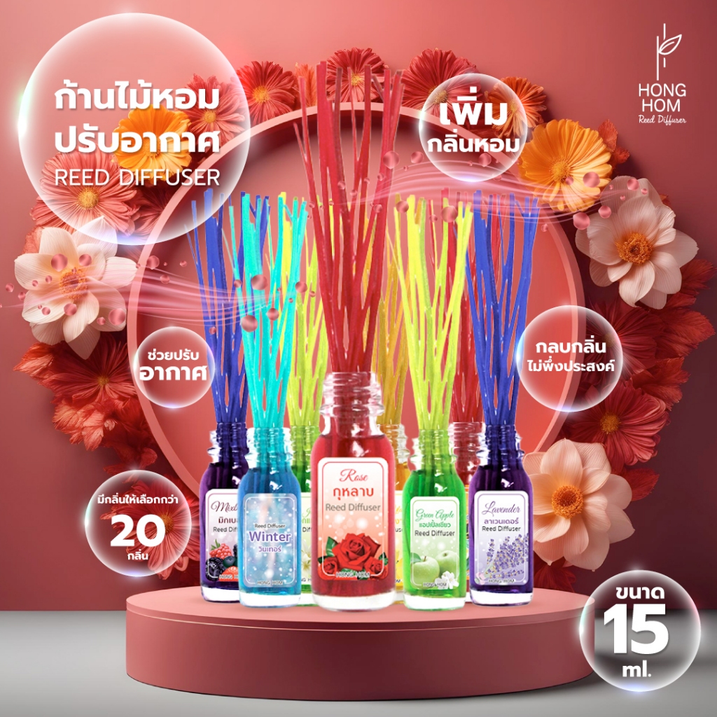 HONGHOM ก้านไม้หอม 15ml ก้านน้ำหอม น้ำหอมอโรม่า น้ำมันหอมระเหย