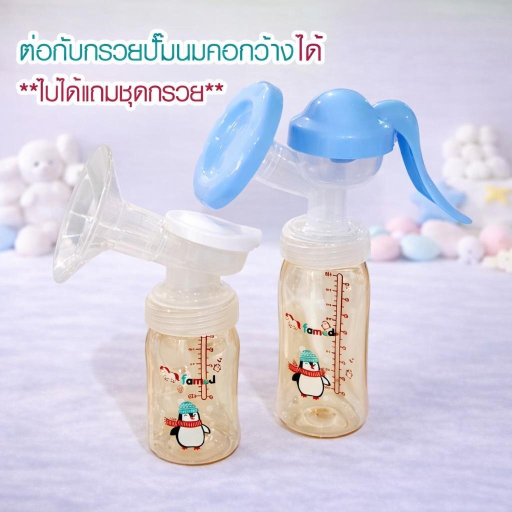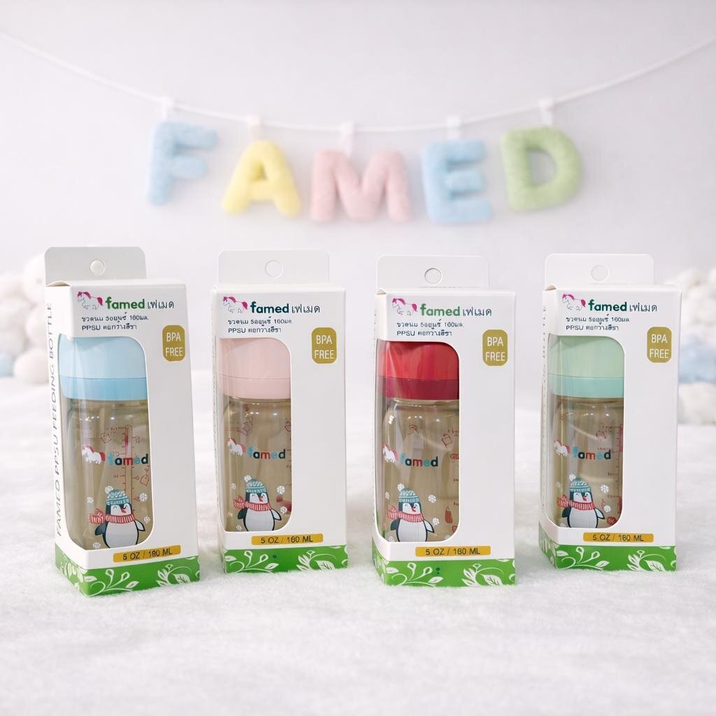 famed ขวดนมสีชา PPSU 5ออนซ์ 8ออนซ์ รุ่น penguin ทนร้อน ทนทาน รับประกันสินค้าทุกขวด