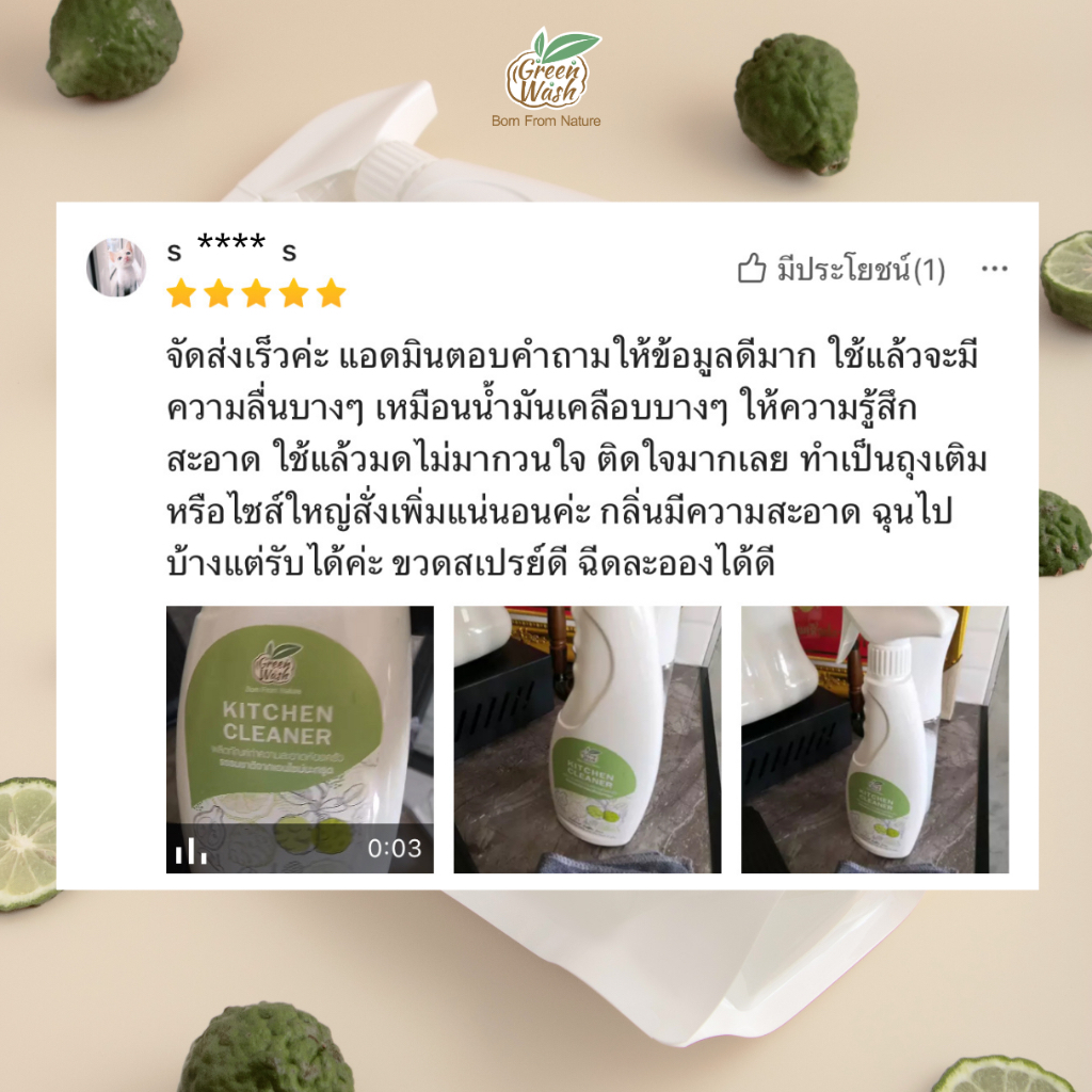 Greenwash Kitchen Cleaner น้ำยาทำความสะอาดครัวออร์แกนิคจากเอนไซม์มะกรูด ขวดสเปรย์ 500ml