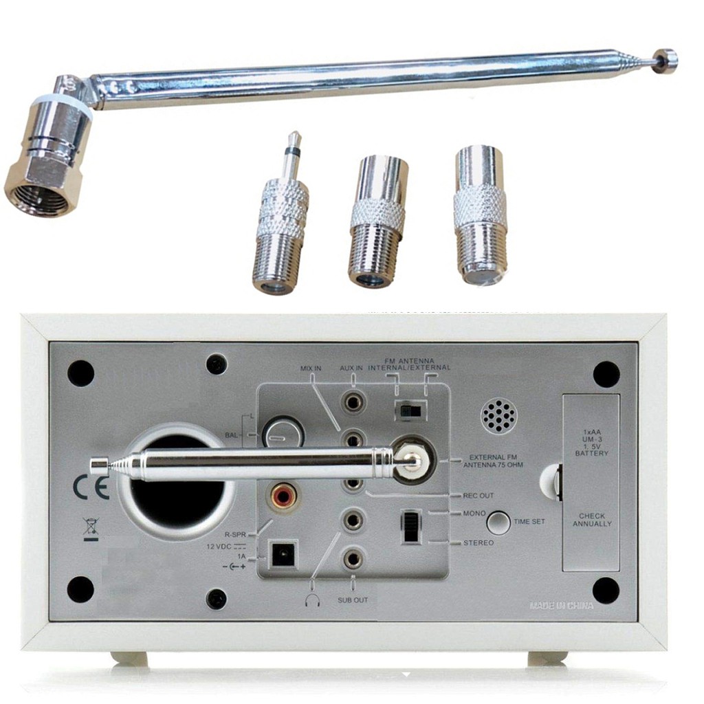 เสาอากาศวิทยุ FM 75 โอห์ม F ชนิด เสาอากาศยืดไสลด์ชายพร้อมอะแดปเตอร์ 3 ตัว