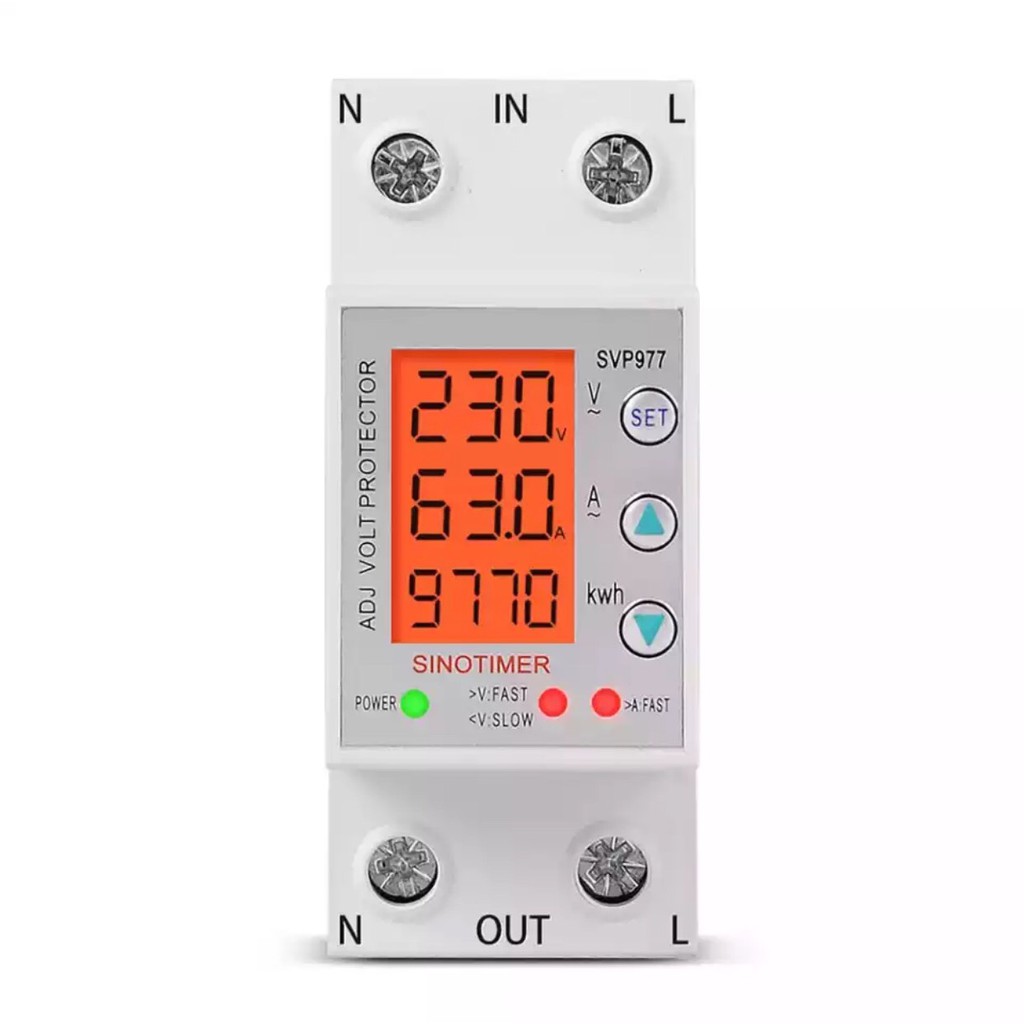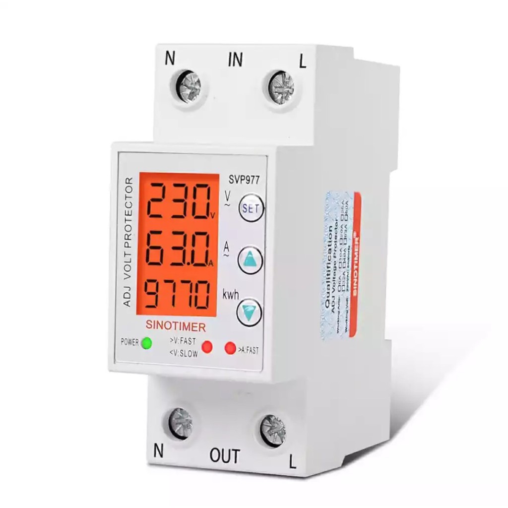SINOTIMER SVP-977L 220VAC 50HZ อุปกรณ์ป้องกันไฟเกิน/ไฟตก/กระแสเกิน/ Energy kWh มิเตอร์(LCD)