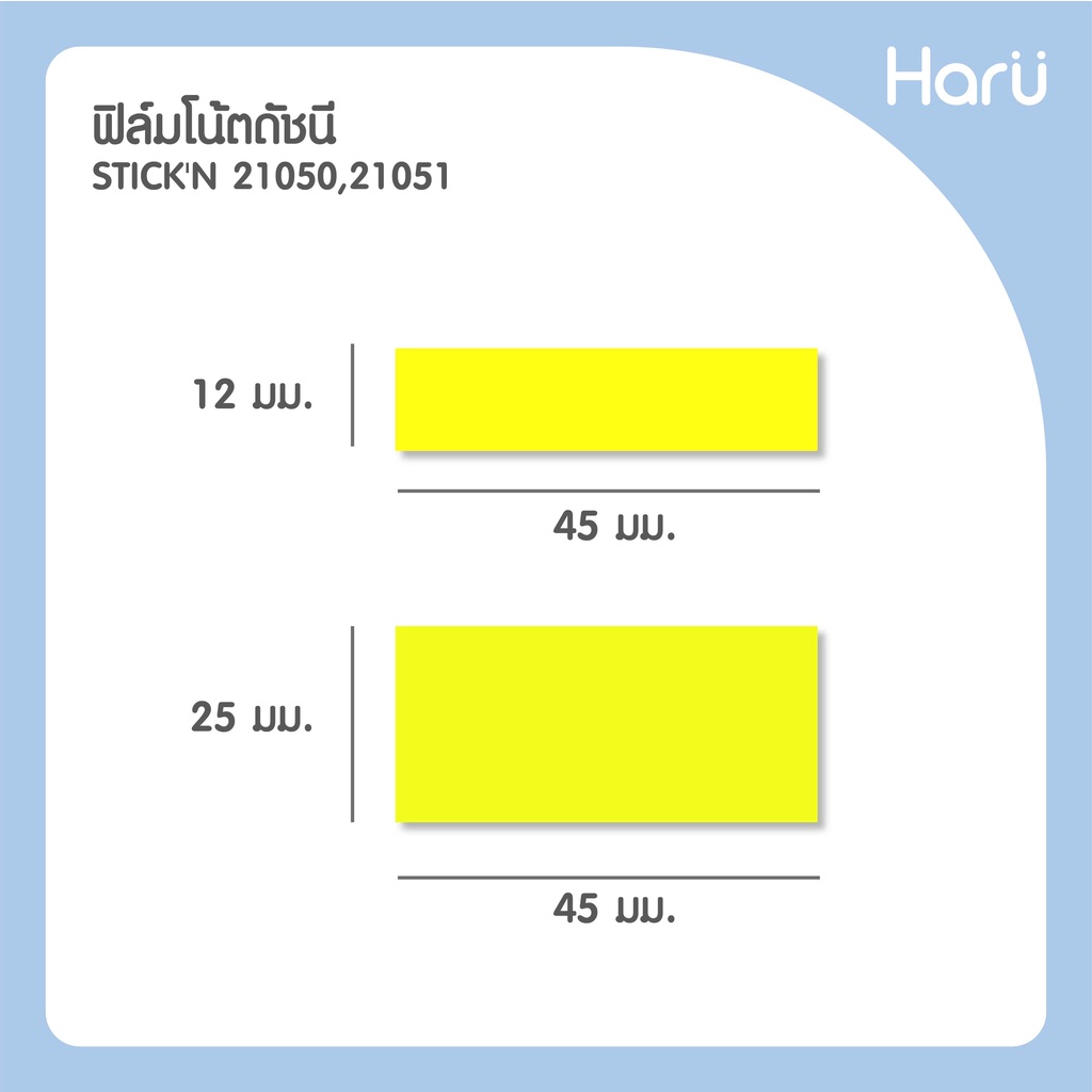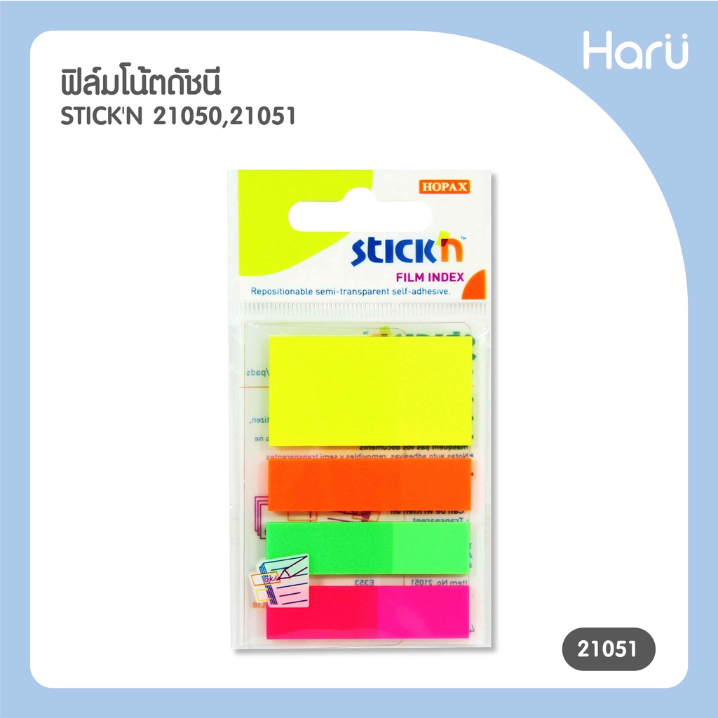 ฟิล์มโน้ตดัชนี STICK'N #21050 ขนาด 4.5 x 1.2 ซม. // #21051 ขนาด 4.5 x 1.2 ซม. + 4.5 x 2.5 ซม. (PC)