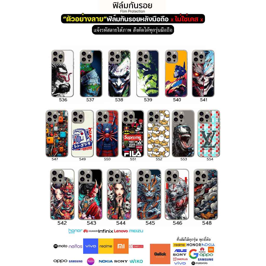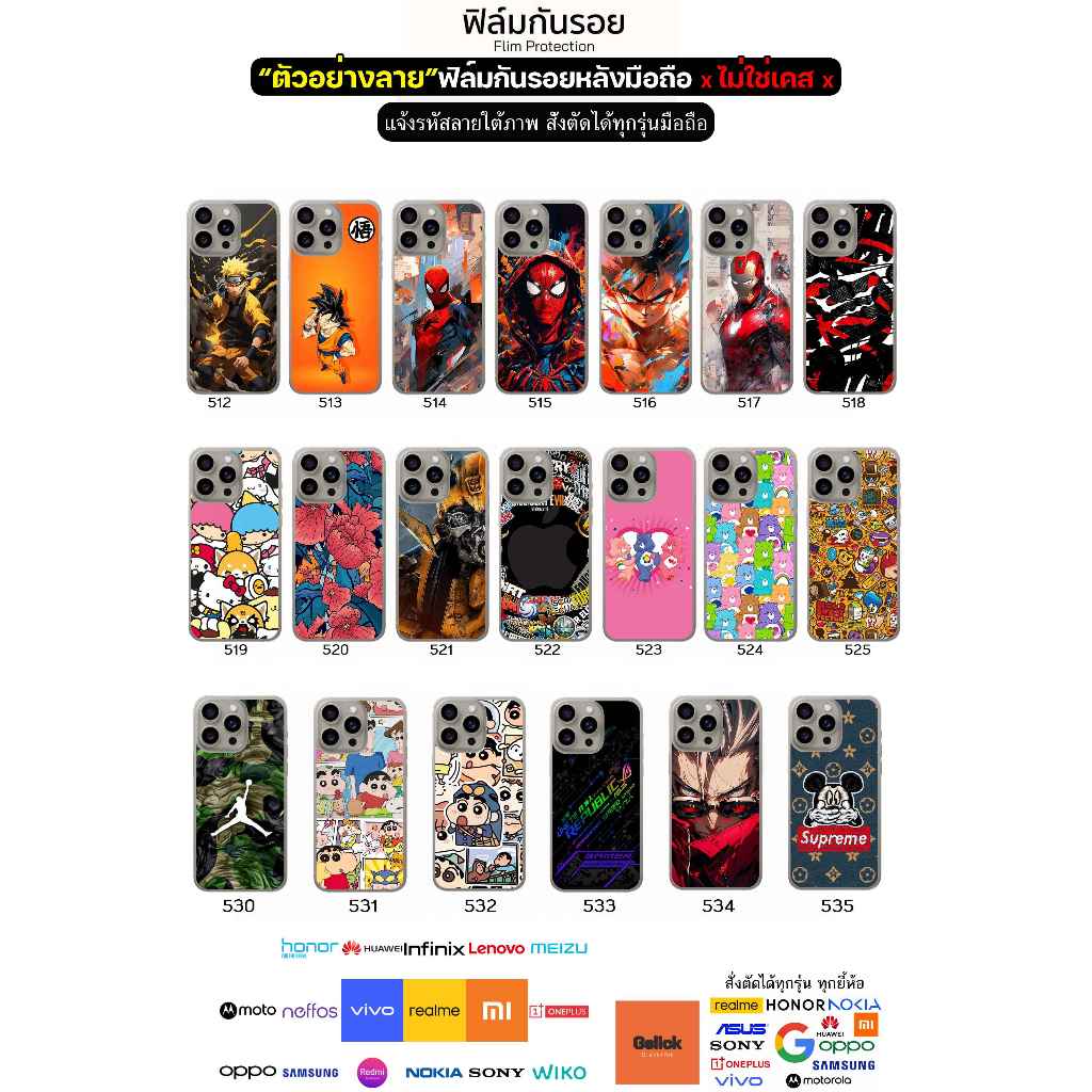 [สั่งตัดทุกรุ่น] ฟิล์มหลังมือถือ ลายกราฟิก ฟิล์มสติกเกอร์กันรอยหลังเครื่อง ไม่ทิ้งคราบกาว ผิวด้าน กันรอยนิ้วมือ