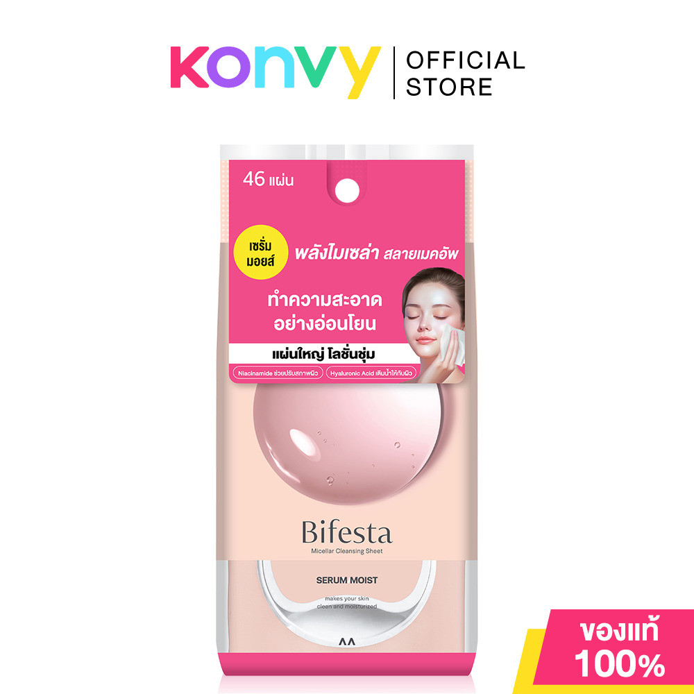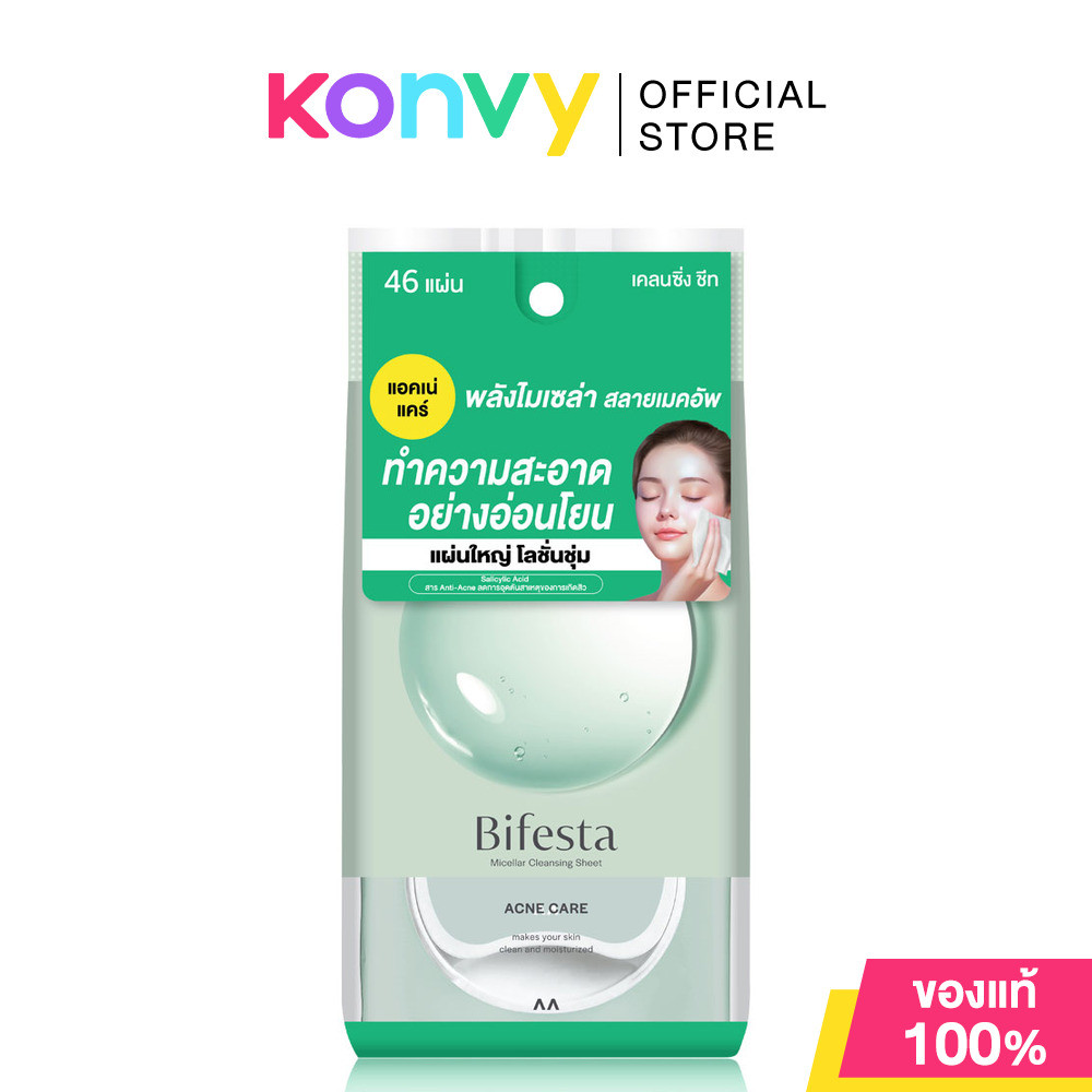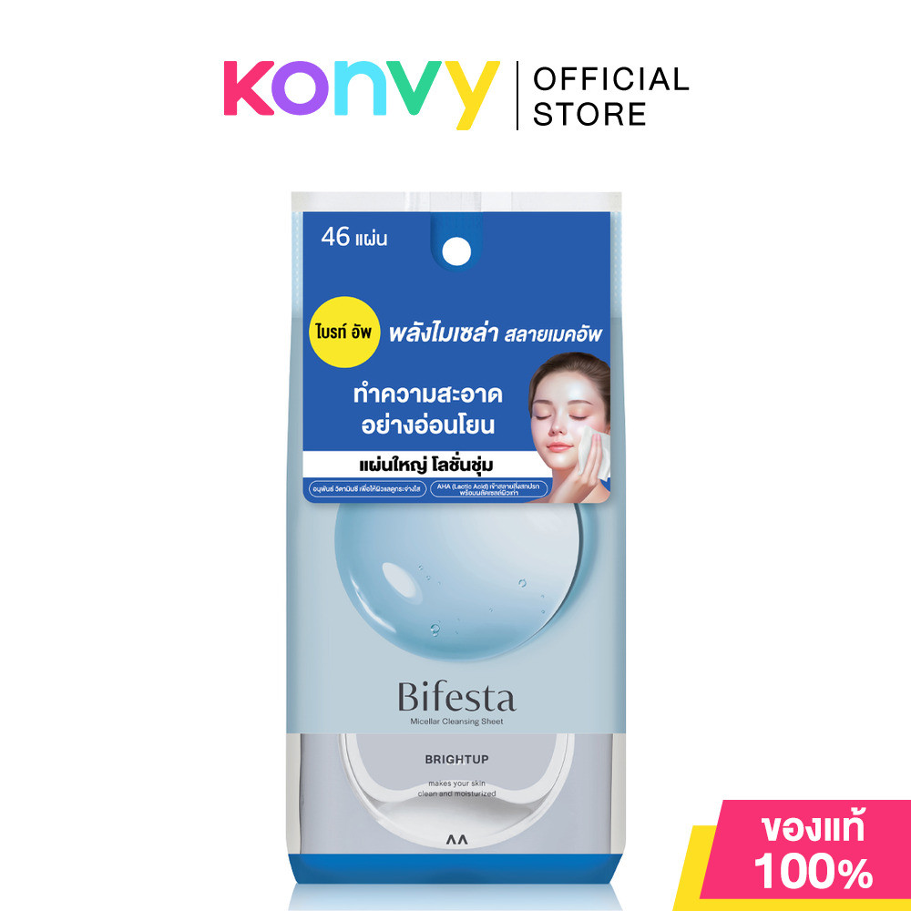 Bifesta Micellar Cleansing Sheet บิเฟสต้า แผ่นเช็ดเครื่องสำอาง 46 Sheets (Acne Care/Brightup/Sebum/Perfect Glow/Clear)