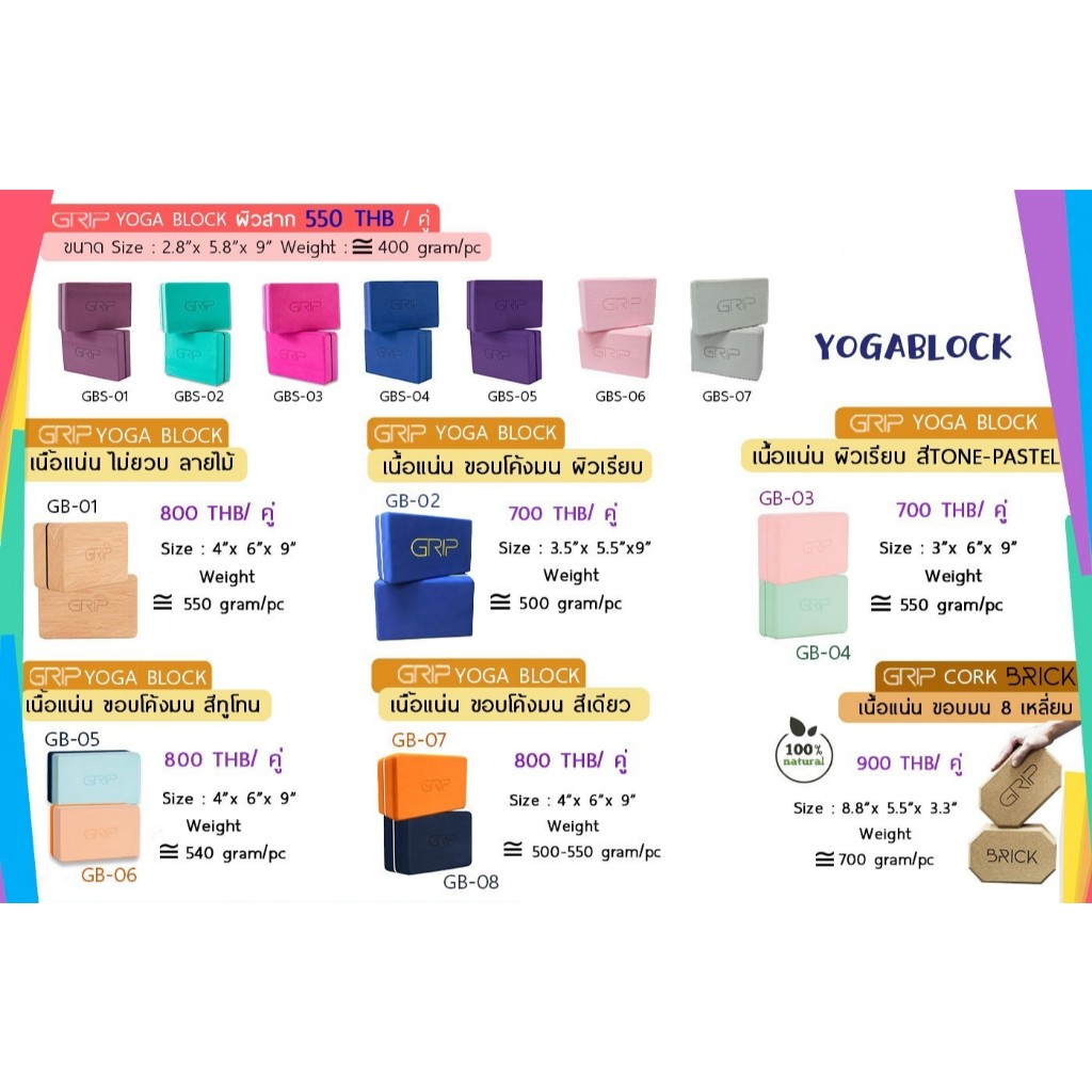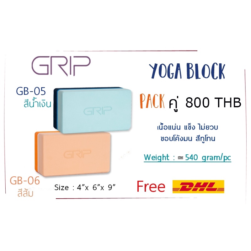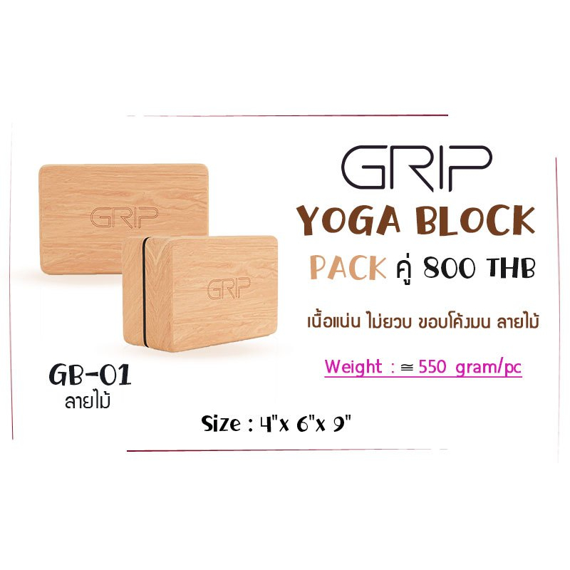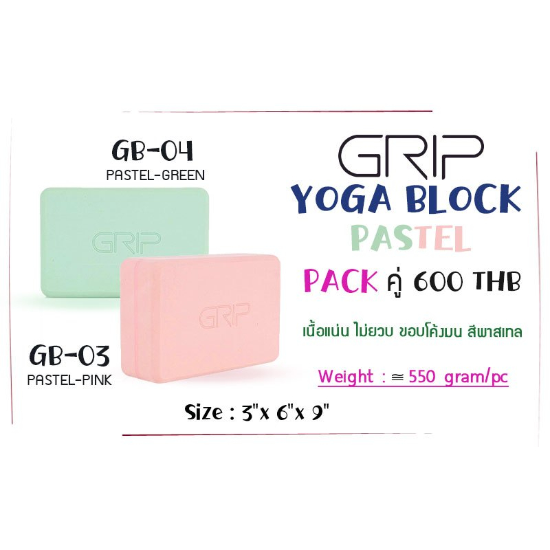 GRIP บล็อกโยคะ แพ็คคู่ เนื้อแน่น ขอบโค้งมน