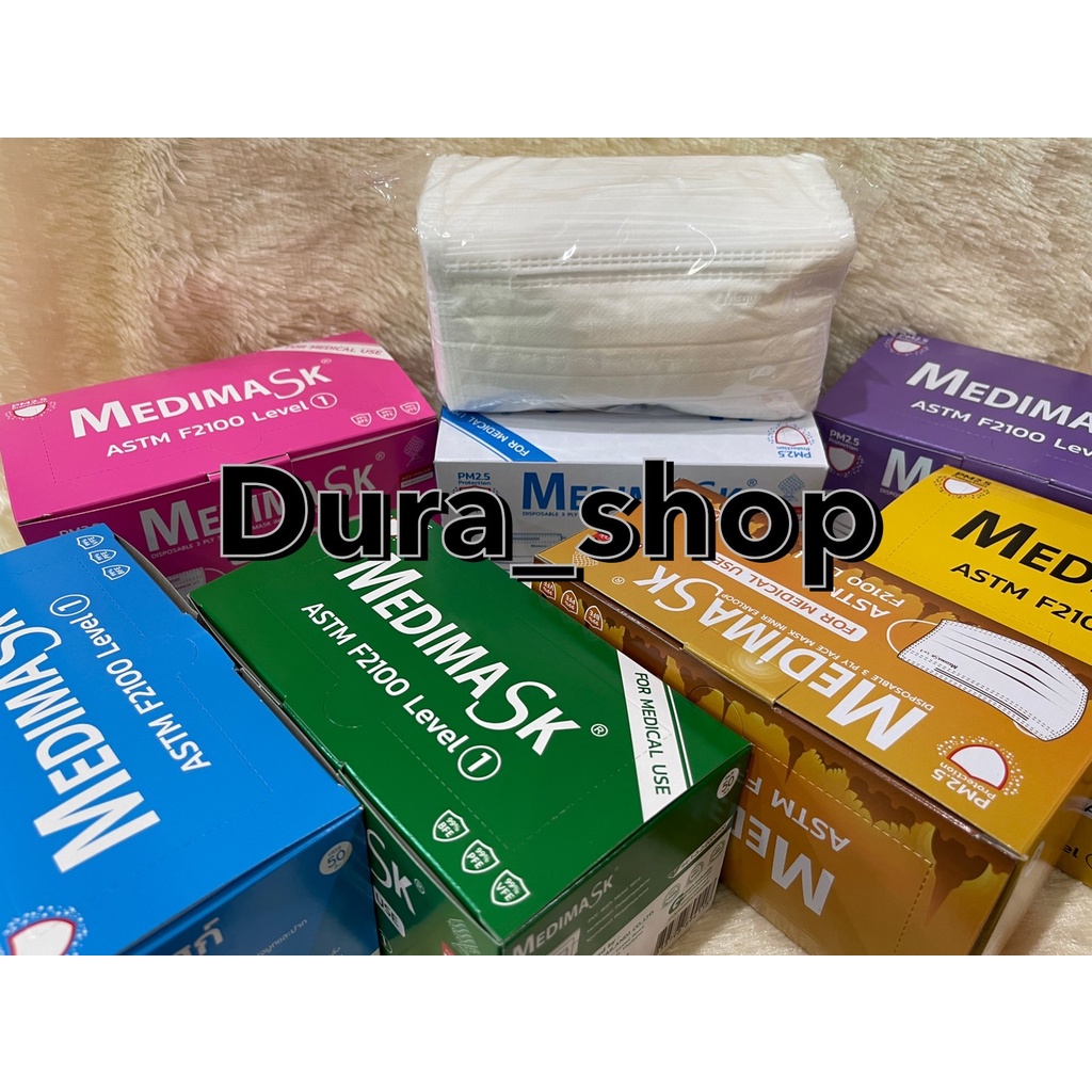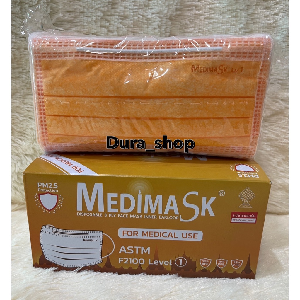 Medimask หน้ากากอนามัย 3ชั้น50ชิ้นต่อกล่อง พร้อมส่ง เกรดการแพทย์ ใช้ในโรงพยาบาล สีส้ม