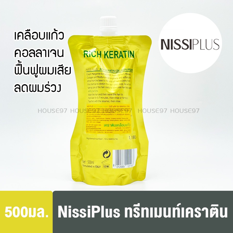 Nissi plus ทรีทเมนท์ เคราติน เคลือบแก้ว คอลลาเจน อาร์แกน นิซซีพลัส 24k 500มล ถุงทอง 1183