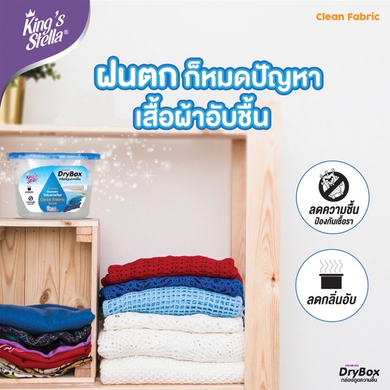 Kings stella dry box240g. กล่องดูดความชื้น ลดกลิ่นอับ ป้องกันเชื้อรา