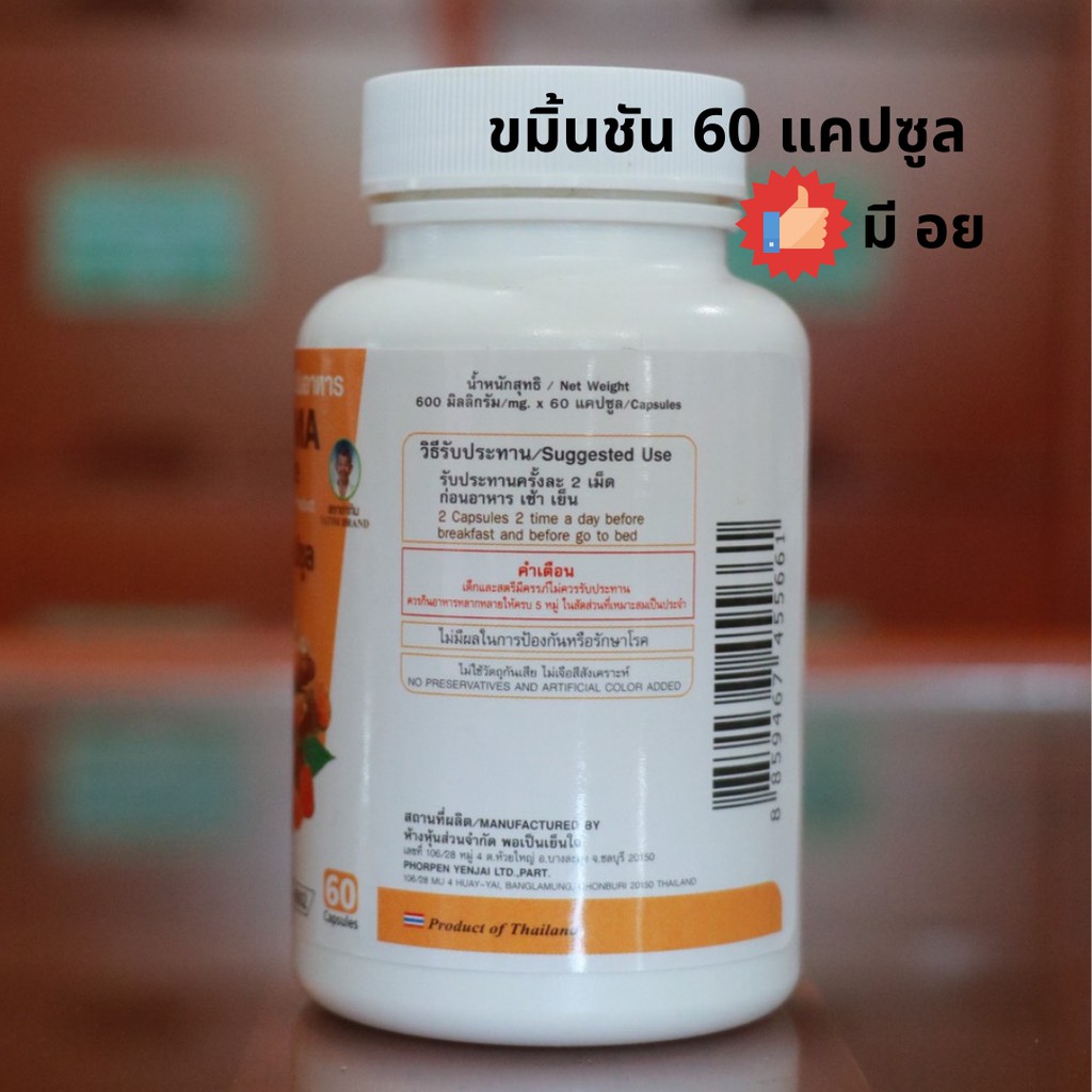 ส่งฟรี ขมิ้นชันแบบแคปซูล พร้อมส่ง มี อย 60 แคปซูล/กระปุก