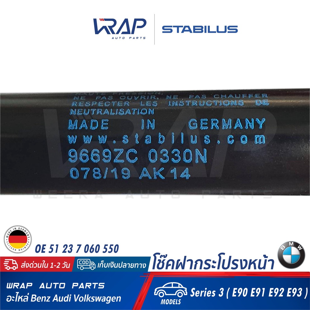 ⭐ BMW⭐ โช๊คฝากระโปรง หน้า STABILUS | BMW รุ่น Series 3 ( E90 E91 E92 E93 ) | เบอร์ 9669ZC 0330N | OE 51 23 7 060 550