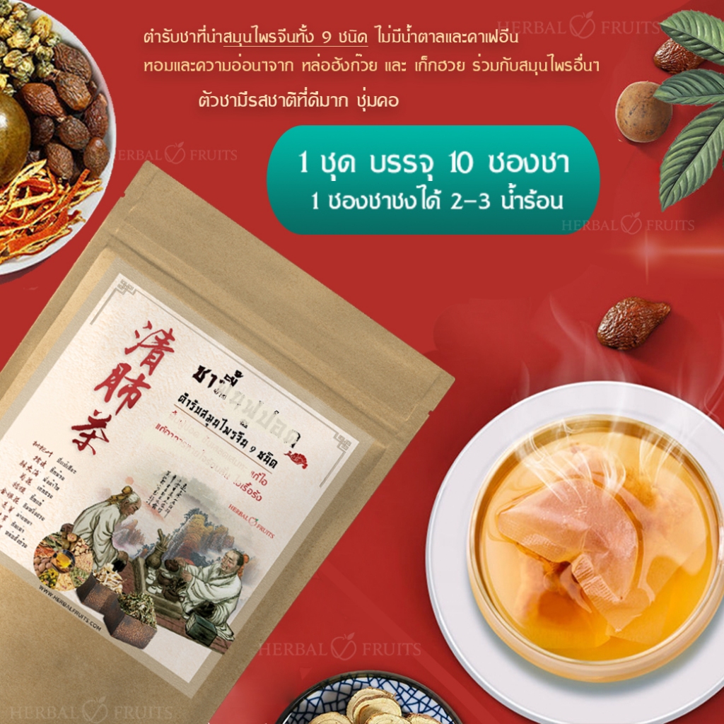 Herbalfruits ชาบำรุงปอด จากสมุนไพรจีน 9 ชนิด กลิ่นหอม ชุ่มคอ ดื่มสบาย 10 ซอง