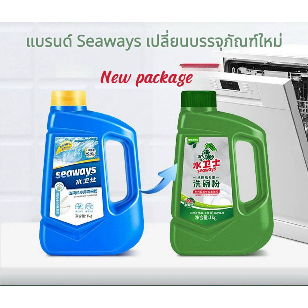 Dishwasher Powder Set Seaways ซีเวย์ส ชุดน้ำยาล้างจานชนิดผงสำหรับเครื่่องล้างจานอัตโนมัติทุกรุ่น น้ำยาแวววาว
