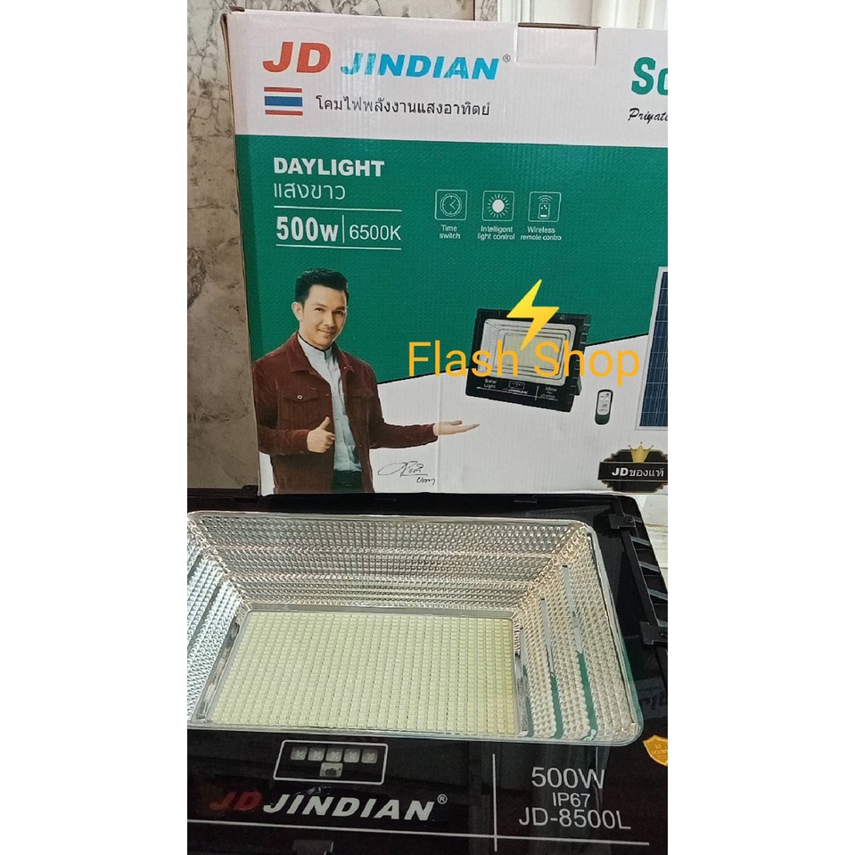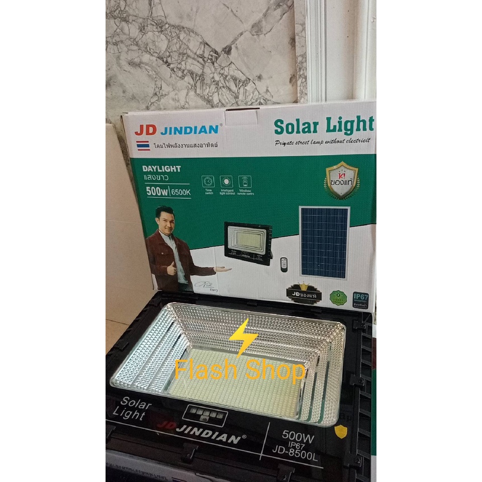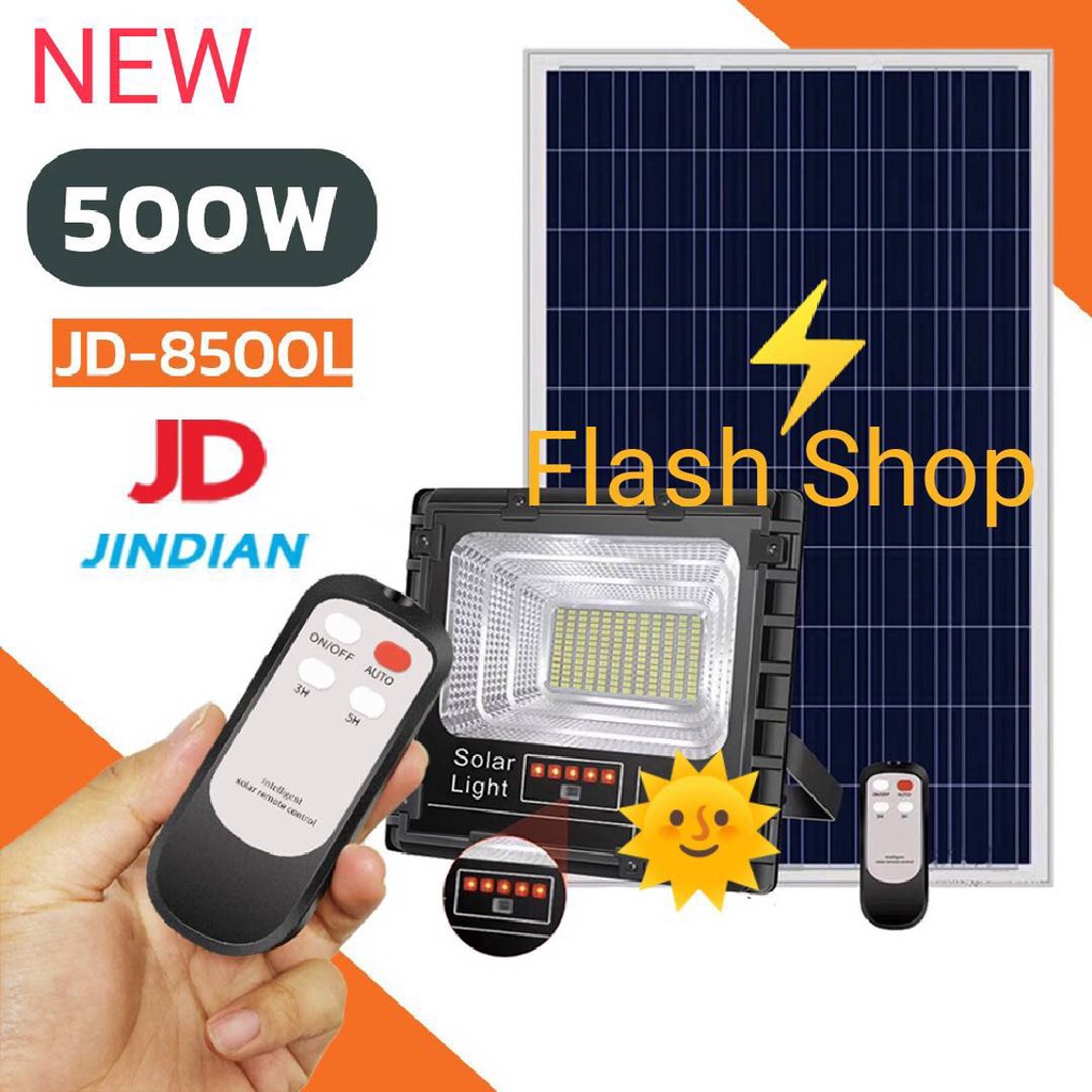 สปอร์ตไลท์JD-8500L (500W)Jindian Solar Street Lightแสงขาวและวอร์มไวท์ พลังงานแสงอาทิตย์รุ่นใหม่ JD-L