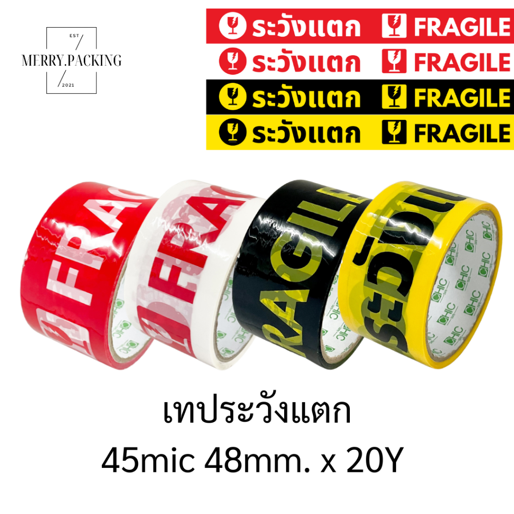 (1แพ็ค/6ม้วน) เทประวังแตก 2 นิ้ว 45 หลา 45 ไมครอน OPP fragile tape สำหรับปิดกล่อง