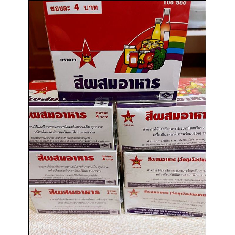 ส่งฟรี‼️ถูกที่สุด❗ สีผสมอาหาร ⭐ตราดาว⭐เเบบซอง 1กล่อง=100ซอง พร้อมส่งทุกสี‼️✅Exp.ปี2028 รับตรงจากโรงงาน