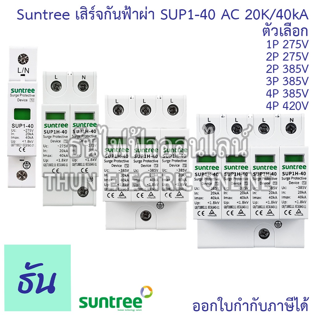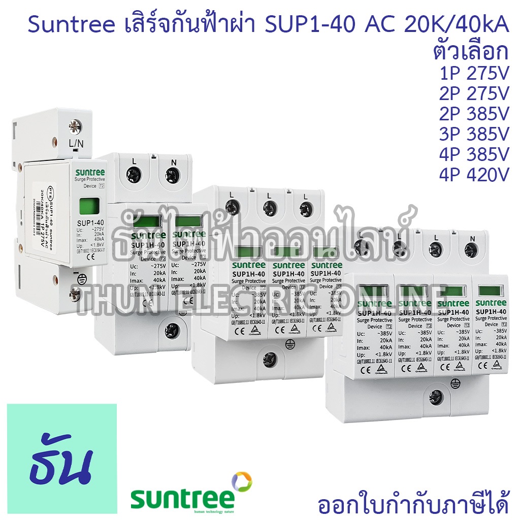 Suntree SUP1-40 เสิร์จกันฟ้าผ่า AC 20K/40KA 1P 275V 2P 275V 2P 385V 3P 385V 4P 385V 4P 420V SPD เสิร์จ กันฟ้าผ่า ธันไฟฟ้
