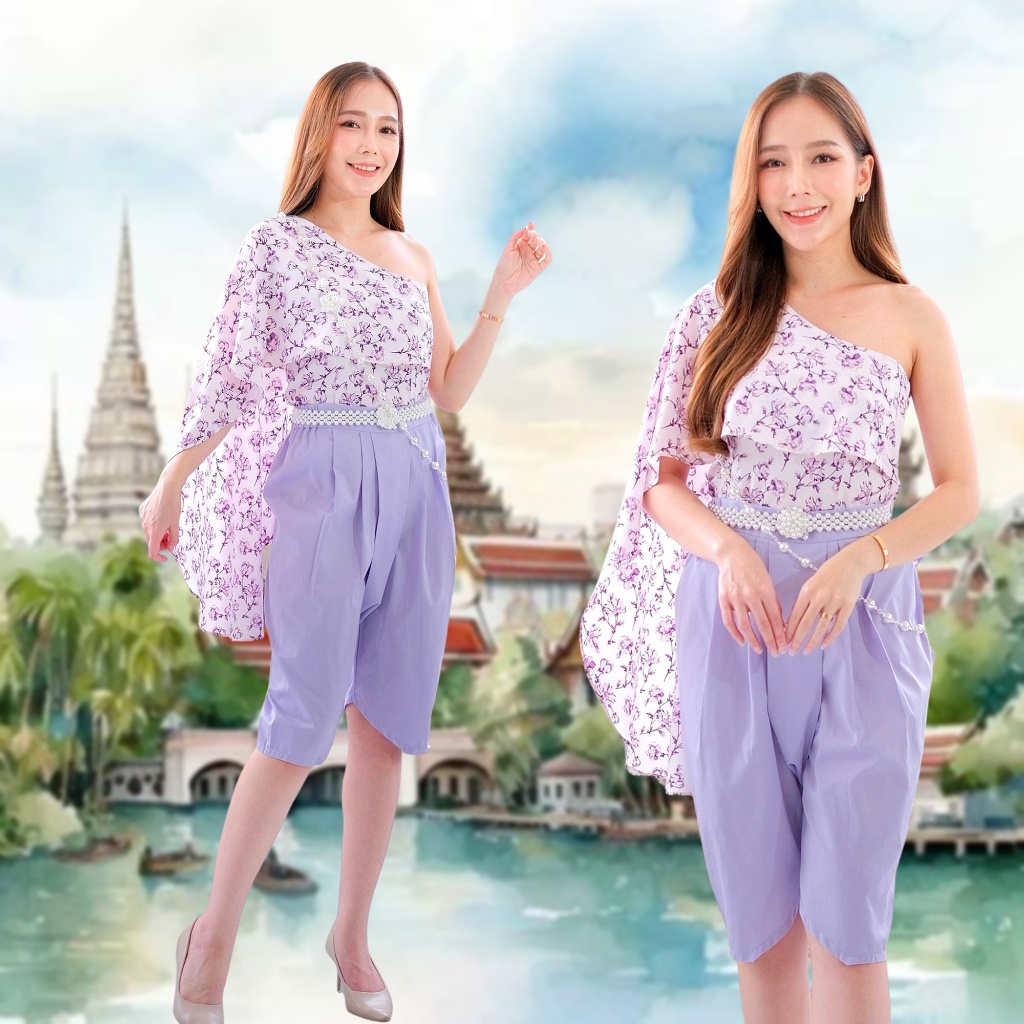 ชุดไทยเด็ก สีพาสเทล ชุดไทยใส่ไปโรงเรียน สะไบลายดอก Shaba Sabai สะไบสำเร็จ โจงกระเบน ชุดไทยน่ารัก