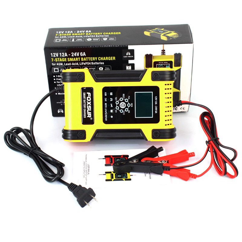 FBC122412D FOXSUR 12V OUT 12A Battery Charger เครื่องชาร์จแบตเตอรี่ รถยนต์ รถมอเตอร์ไซค์ LiFePo4 Deep 12V / 24V