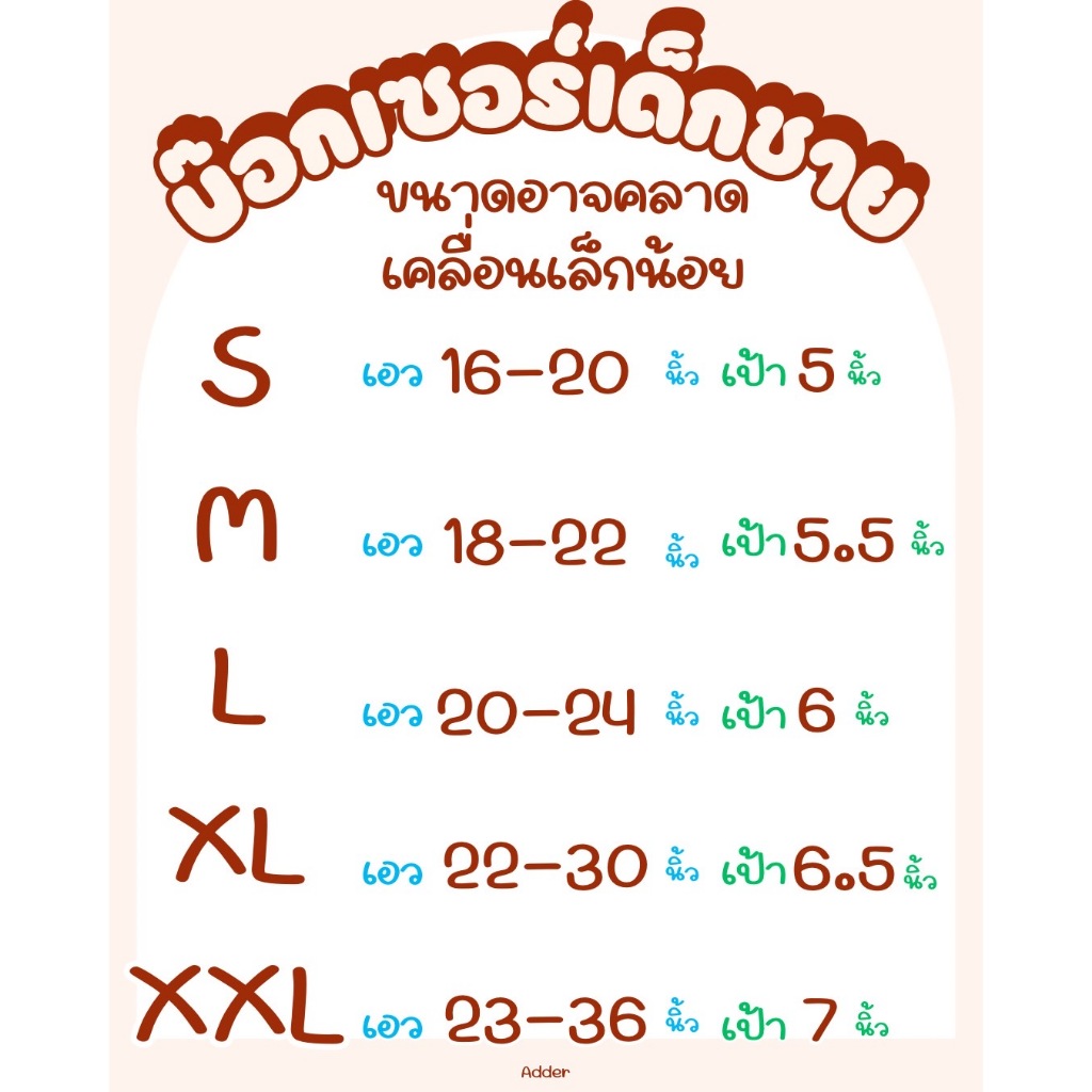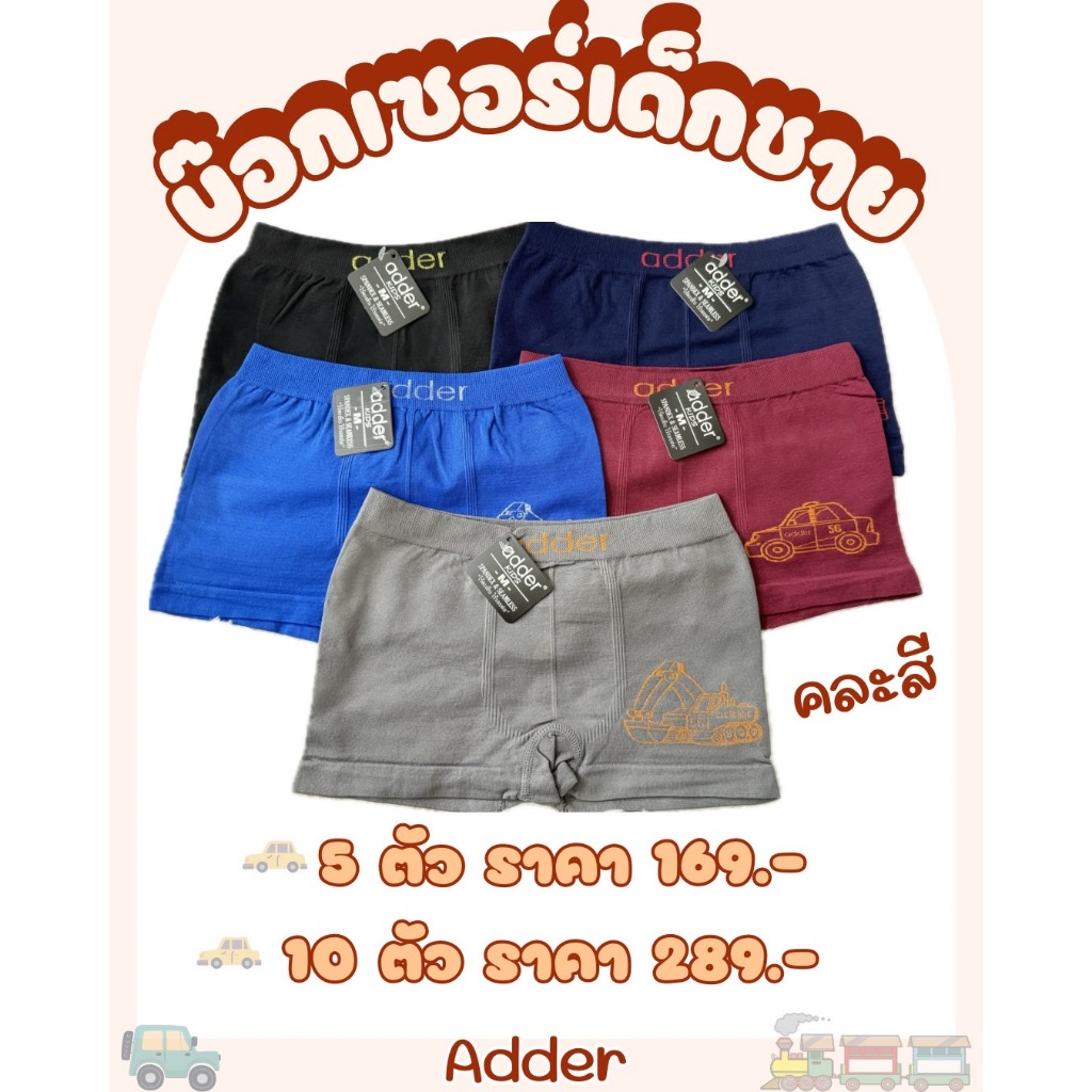 กางเกงในเด็กชาย Adder บ็อกเซอร์เด็ก (5 ตัว 10 ตัว/คละสี) ทุกไซส์