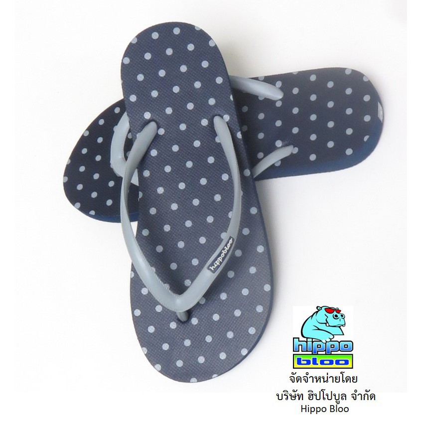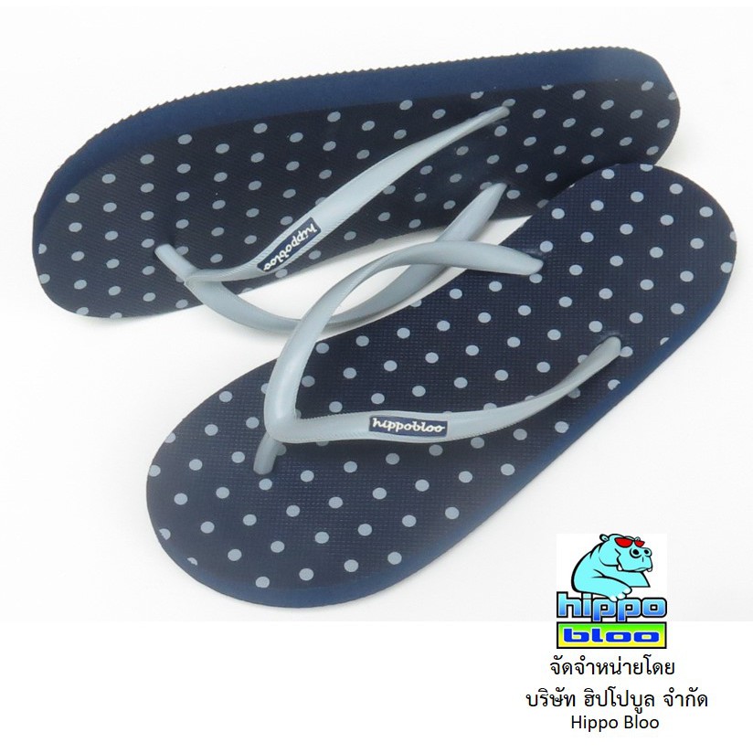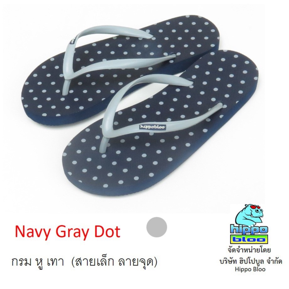 Hippo bloo รองเท้าแตะฮิปโปบูล Navy Gray Dot กรม / จุดเทา สายเล็ก ลายจุด