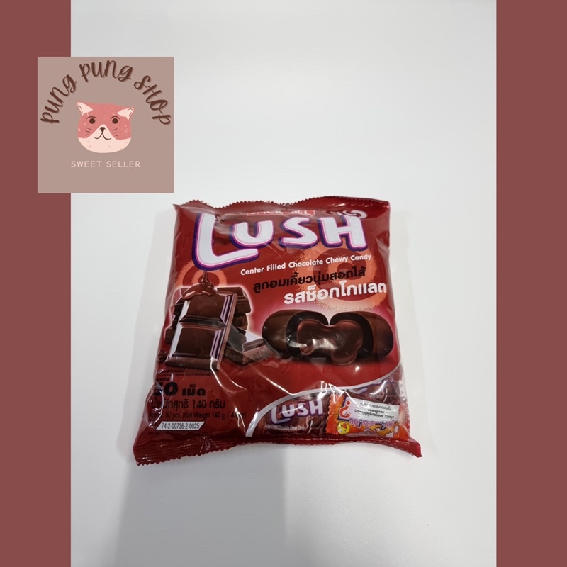 (ขายขั้นต่ำ2ห่อ) ลูกอมลัช50เม็ด ลูกอมเคี้ยวนุ่ม สอดไส้140กรัม มี5รสชาติ