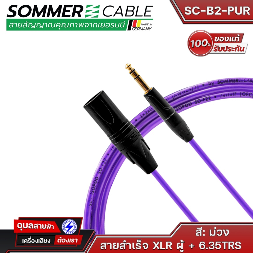 Sommer cable SC-B2 Basic XLR to 6.35 TRS สายแจ็ค สเตอริโอ เครื่องเสียง Stereo 24AWG OFC Jack Audio