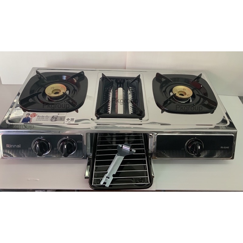 Rinnai เตาแก๊สแบบตั้งโต๊ะ 2หัวเตา+1 เตาย่าง รุ่น RI-524E