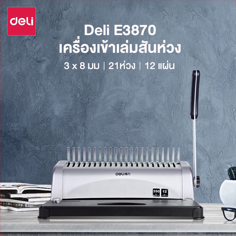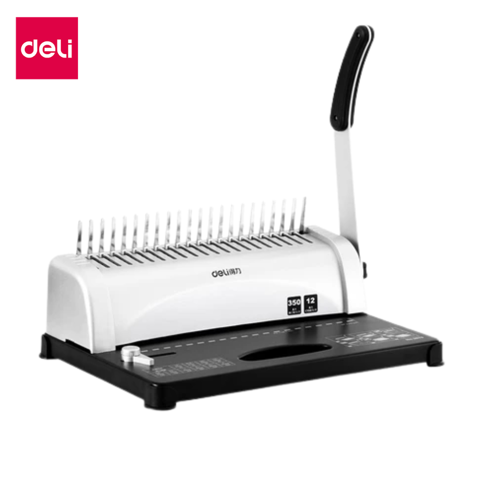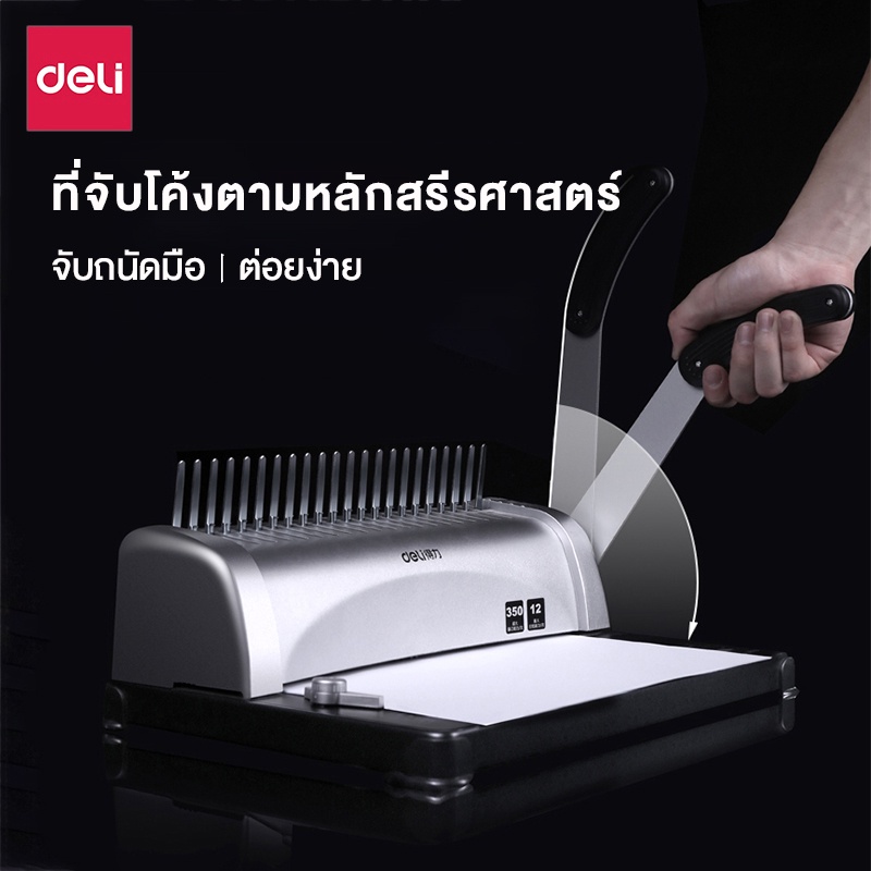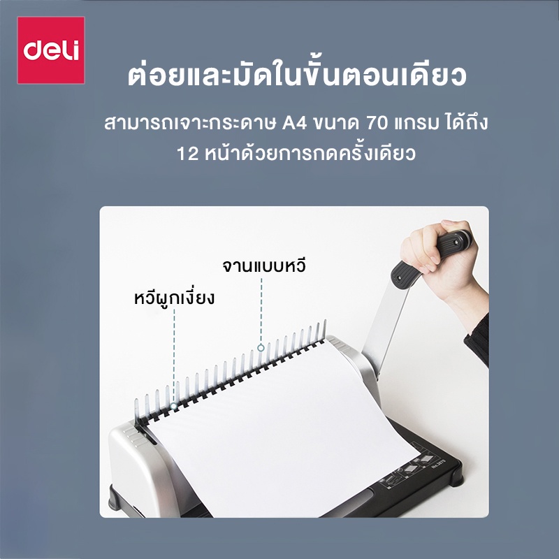 Deli เครื่องเข้าเล่ม เครื่องเข้าเล่มเอกสาร เจาะสูงสุด 12แผ่น/ครั้ง เข้าเล่มกระดูกงู Binding Machine