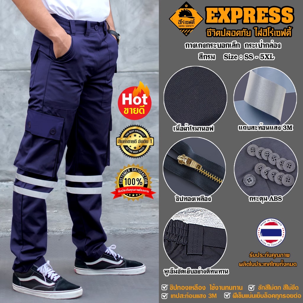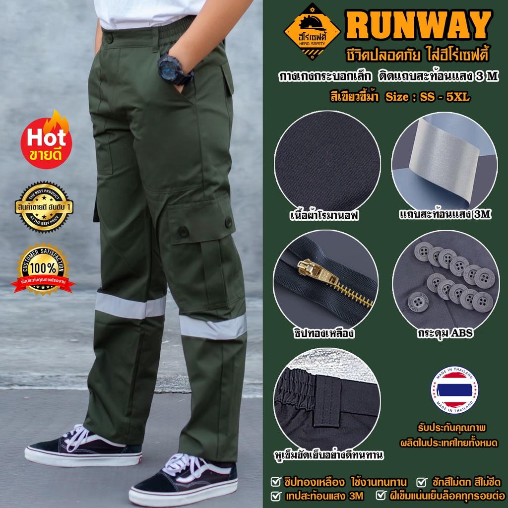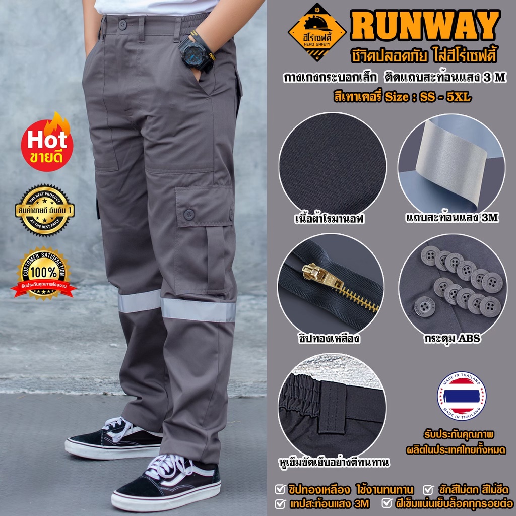 HERO SAFETY :กางเกงคารโก้ รุ่น Runway-Express 6 กระเป๋า ติดแถบสะท้อนแสง กระบอกเล็ก ทำงานช่าง ขนส่ง WORKWEARTHAILAND