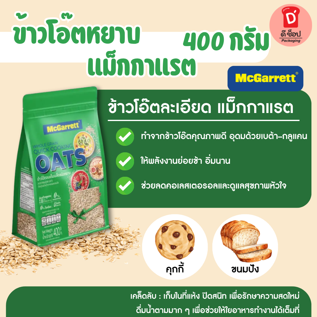ข้าวโอ๊ต ตรา แม็กกาแรต ขนาด 400 g ข้าวโอ๊ตหยาบ ข้าวโอ๊ตละเอียด แผ่นข้าวโอ๊ตอบ (ราคา 1 ชิ้น ) Quick Oats,Intanst Oats,...