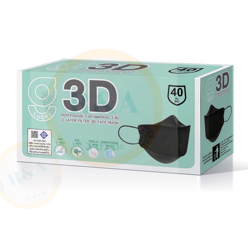 KSG หน้ากากอนามัยล็อตใหม่หนา 3 ชั้น G LUCKY 3D Face Mask 3-Layer(กล่องบรรจุ 40ชิ้น)ป้องกันฝุ่น PM2.5