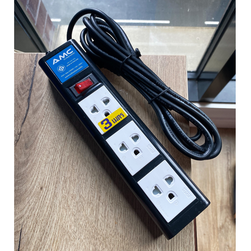 AMC รางปลั๊กไฟ 3 ช่อง ( ลูกปลั๊กแท้ ) มาตราฐาน มอก. 3-5 เมตร ปลั๊กไฟ ปลั๊กพ่วง รับประกัน 2 ปี B13XX