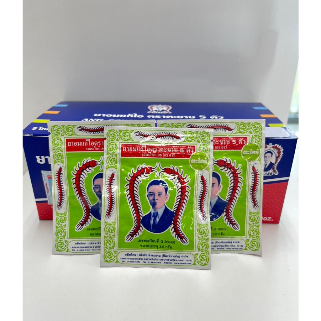 (แพ็ค 12 ซอง) ตะขาบ5ตัว ยาอมแก้ไอ รสตะไคร้ เอช เอช อาร์ (แบบซอง) 3 กรัม