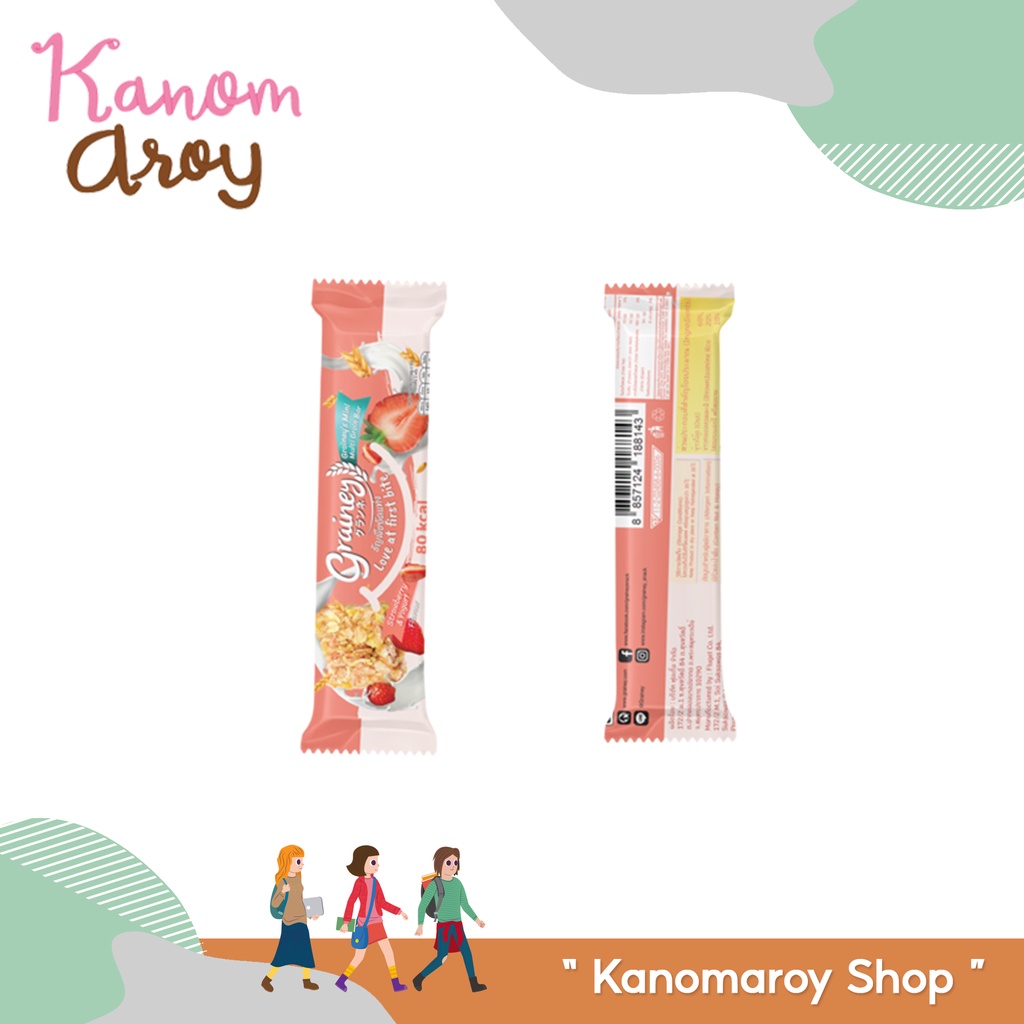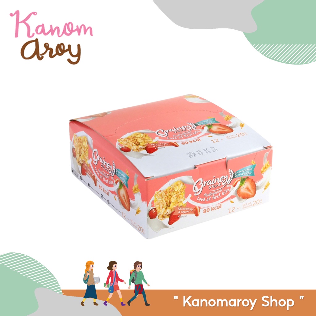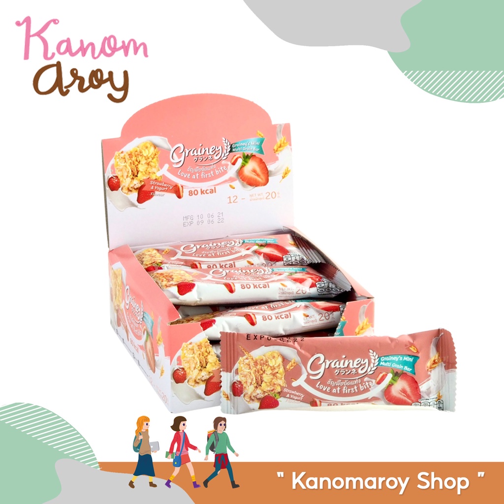 Grainey Multigrain Bar เกรนเน่ย์ บาร์ ธัญพืชอัดแท่งพร้อมทาน รสสตรอเบอร์รี่ โยเกิร์ต ขนาด 20 กรัม (กล่อง 12 ชิ้น)