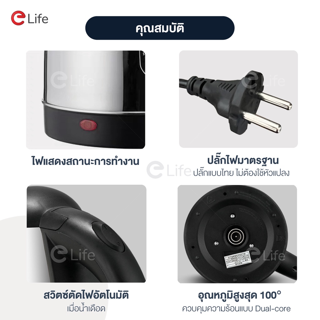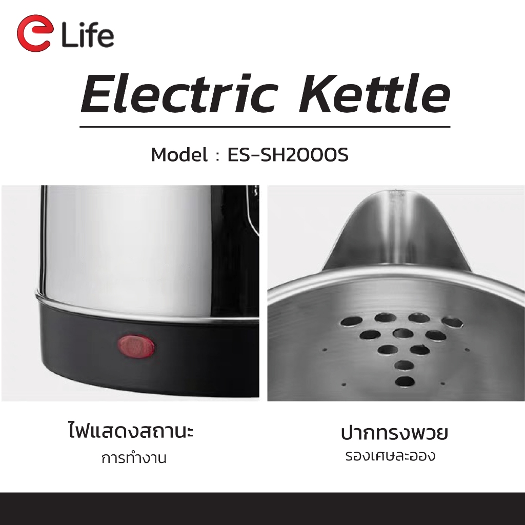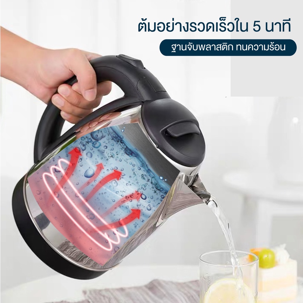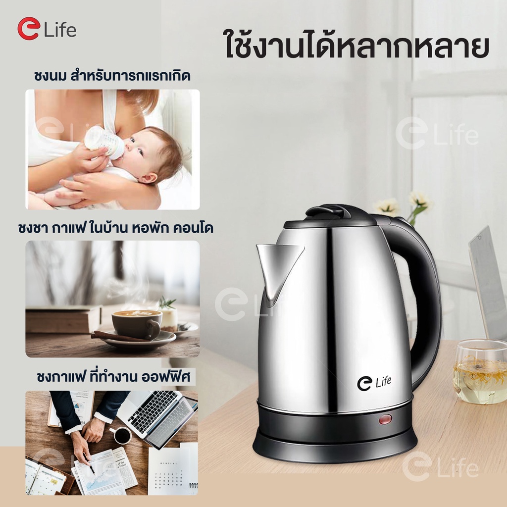 Elife กาต้มน้ำ ไฟฟ้า ความจุ2L ตัดไฟอัตโนมัติ ร้อนเร็ว กาต้มน้ำร้อน สแตนเลส304 กาน้ำร้อน ประกัน1ปี