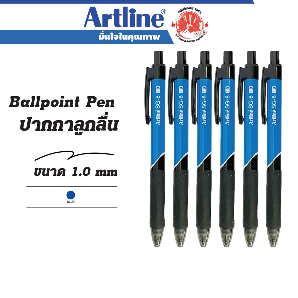 ปากกาลูกลื่น Artline Ball Point Pen ชุด 6 ด้าม ขนาด 1.0 มม. หมึกสีน้ำเงิน ชนิดหัวกดเขียนลื่นไม่สะดุด