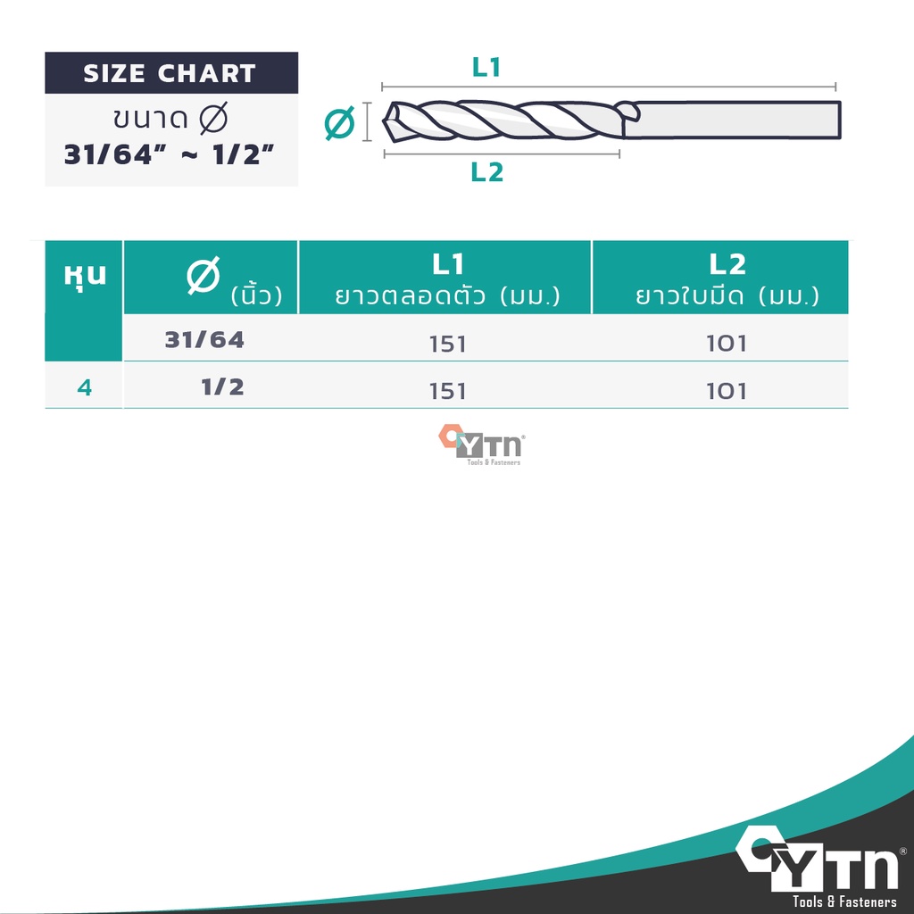 MEXCO ดอกสว่านเจาะเหล็กไฮสปีด HSS | ขนาด 17/64" - 1/2" นิ้ว