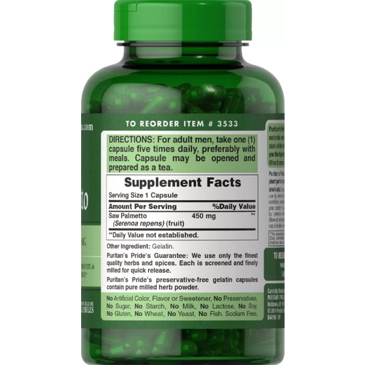[ของแท้ 100%] PURITAN'S PRIDE SAW PALMETTO 450 mg