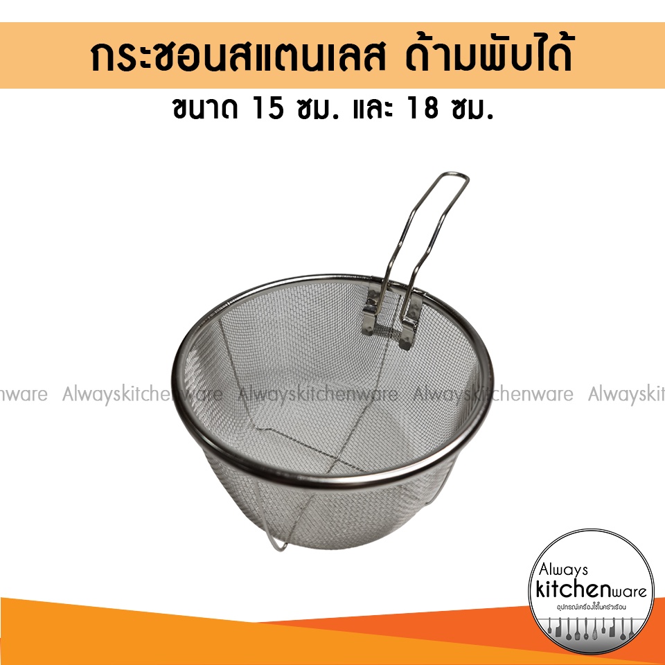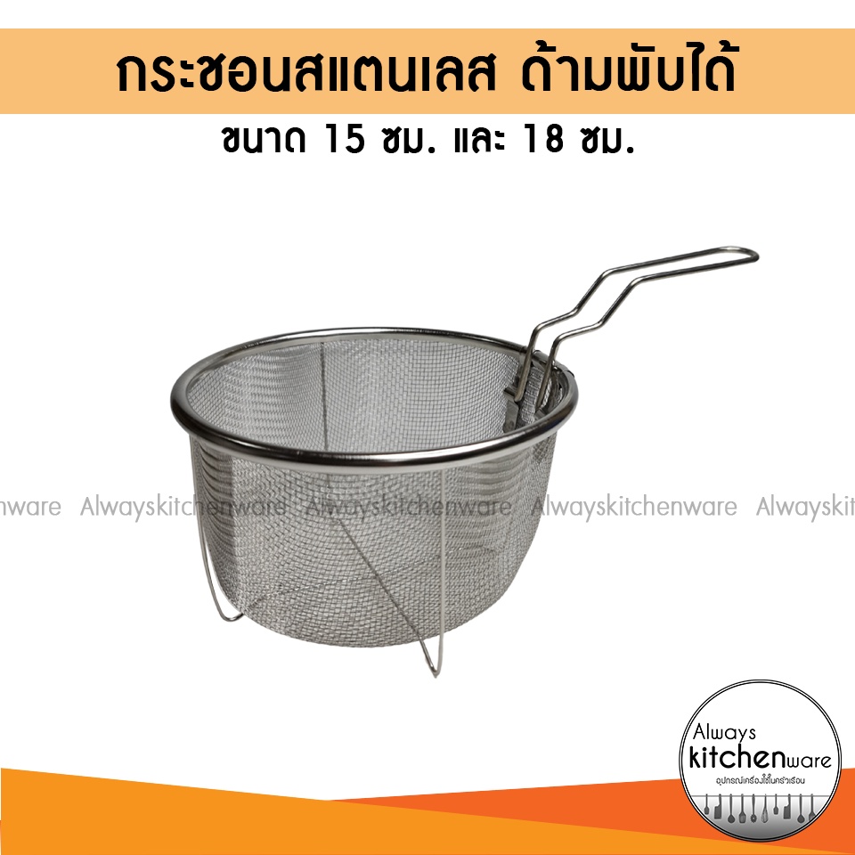 2 ขนาด กระชอนสแตนเลส ด้ามพับได้ ตะแกรงสำหรับ ทอด ลวก ต้ม กรองอาหาร