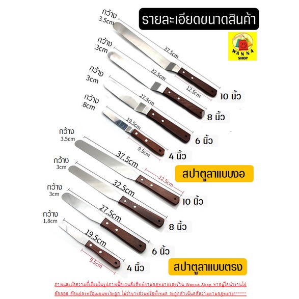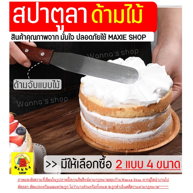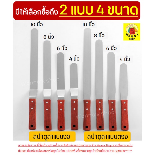 🔥ส่งฟรี🔥 สปาตูล่า สเตนเลสแท้(ด้ามไม้) wanna แบบตรง/แบบงอ ขนาด 4 6 8 10นิ้วที่ปาดเค้ก ที่ปาดหน้าเค้ก มีดปาดเค้ก สปาตูลา