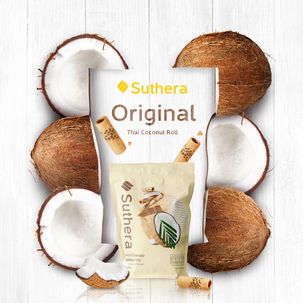 ทองม้วนสุธีรา ม้วนความใส่ใจ ไว้ในทุกคำ กรอบ ทำจากน้ำกะทิสดสูตรโบราณต้นตำรับจากศรีฟ้าเบเกอรี่กาญจนบุรี (แบบถุง) 70 กรัม
