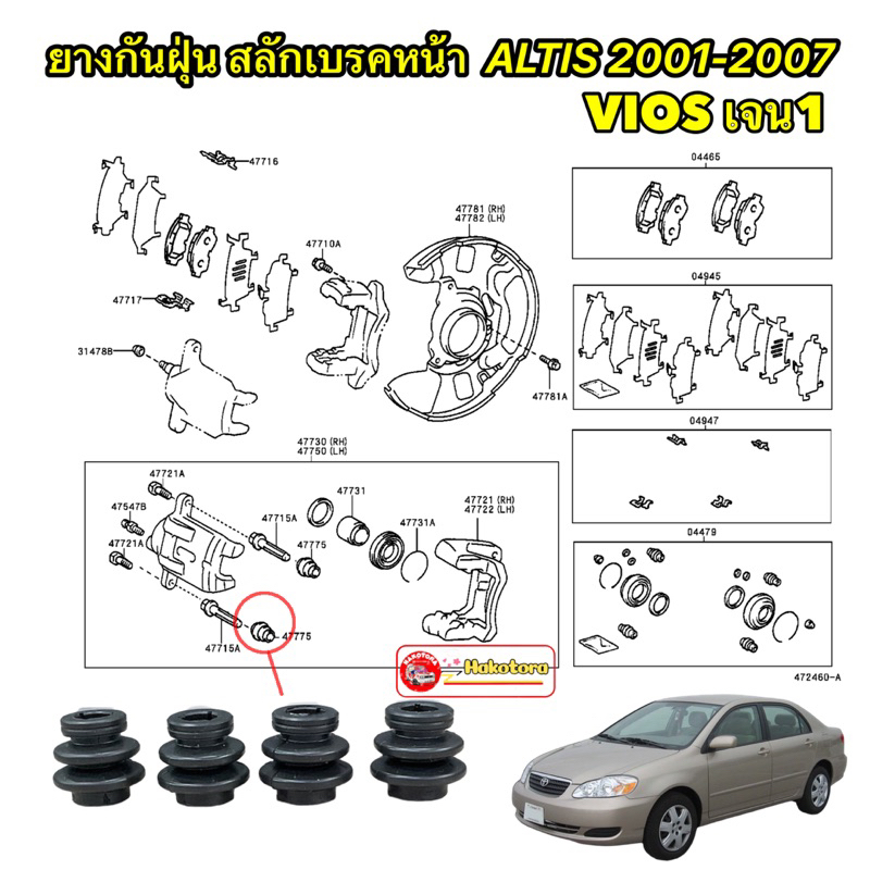 ยางกันฝุ่น สลักเบรคหน้า ตัวเล็ก Toyota ALTIS 2002-2007 VIOS 2002-2007 GEN 1 (ได้4ตัว)