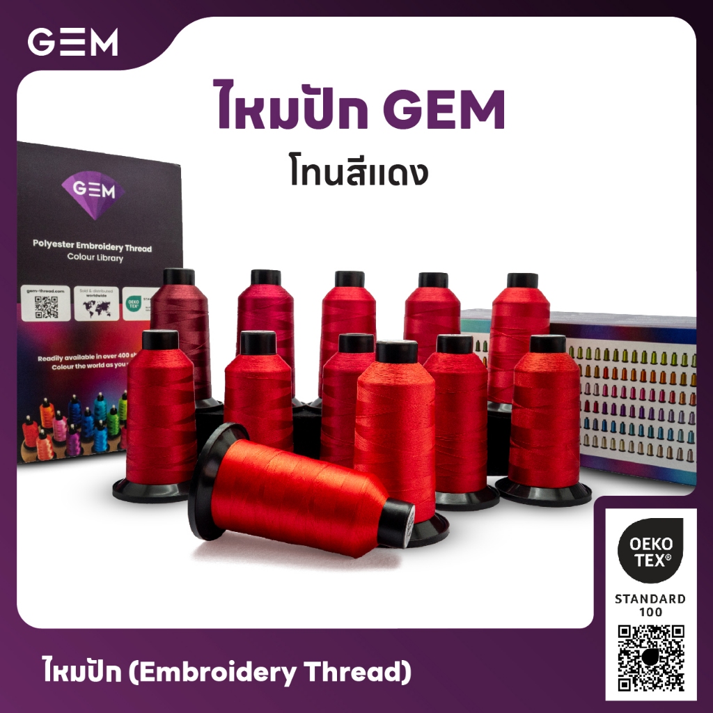 ไหมปัก GEM Embroidery Thread โทนแดง Red ซักฟอกสีไม่ตก 3,000 เมตร Oeko-Tex Class 1