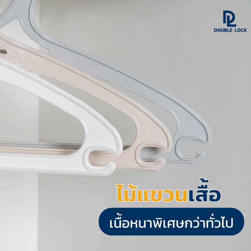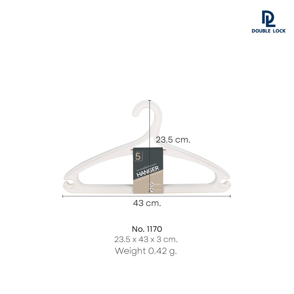 Double Lock ไม้แขวนเสื้อรุ่น พลาสติกแข็ง รุ่น 1170 จำนวน 3 แพ็ค (15 ชิ้น)