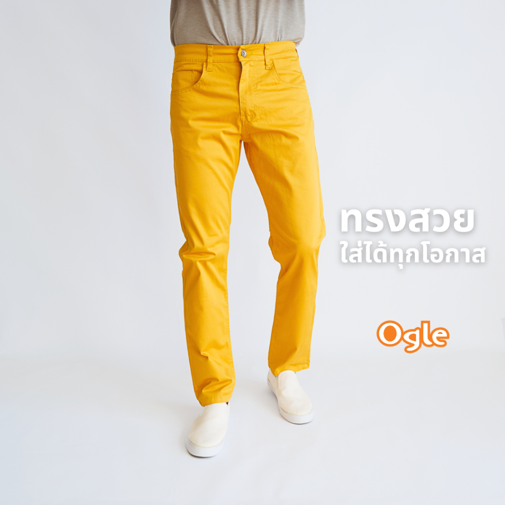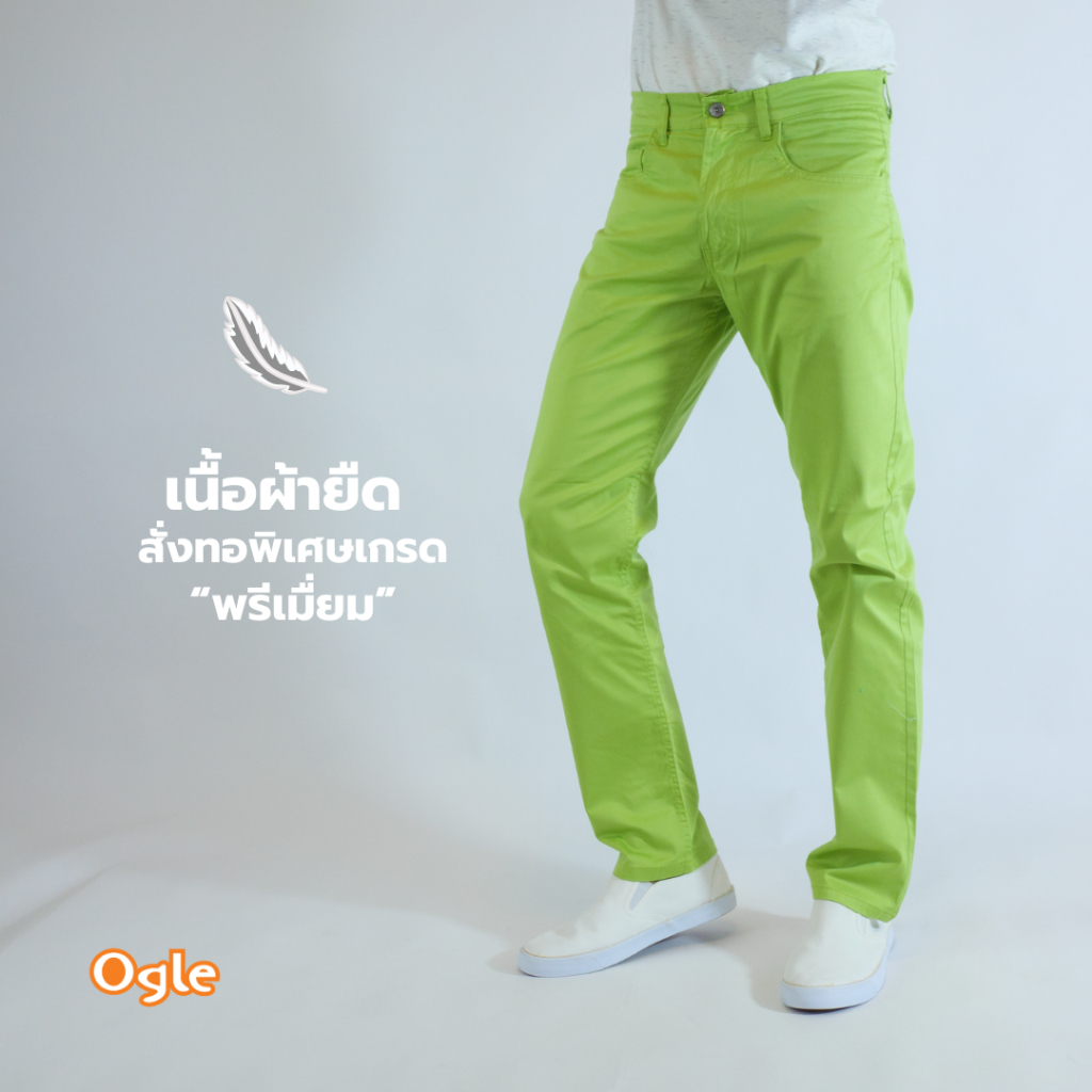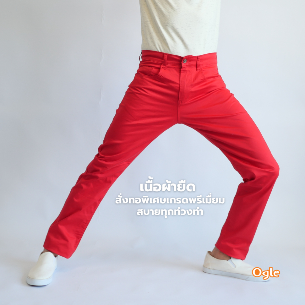 กางเกงขายาวทรงกระบอกเล็ก สีสด ผ้าคอตตอนยืดและฟอกนุ่มมาก สีไม่ตก Ogle 5092011