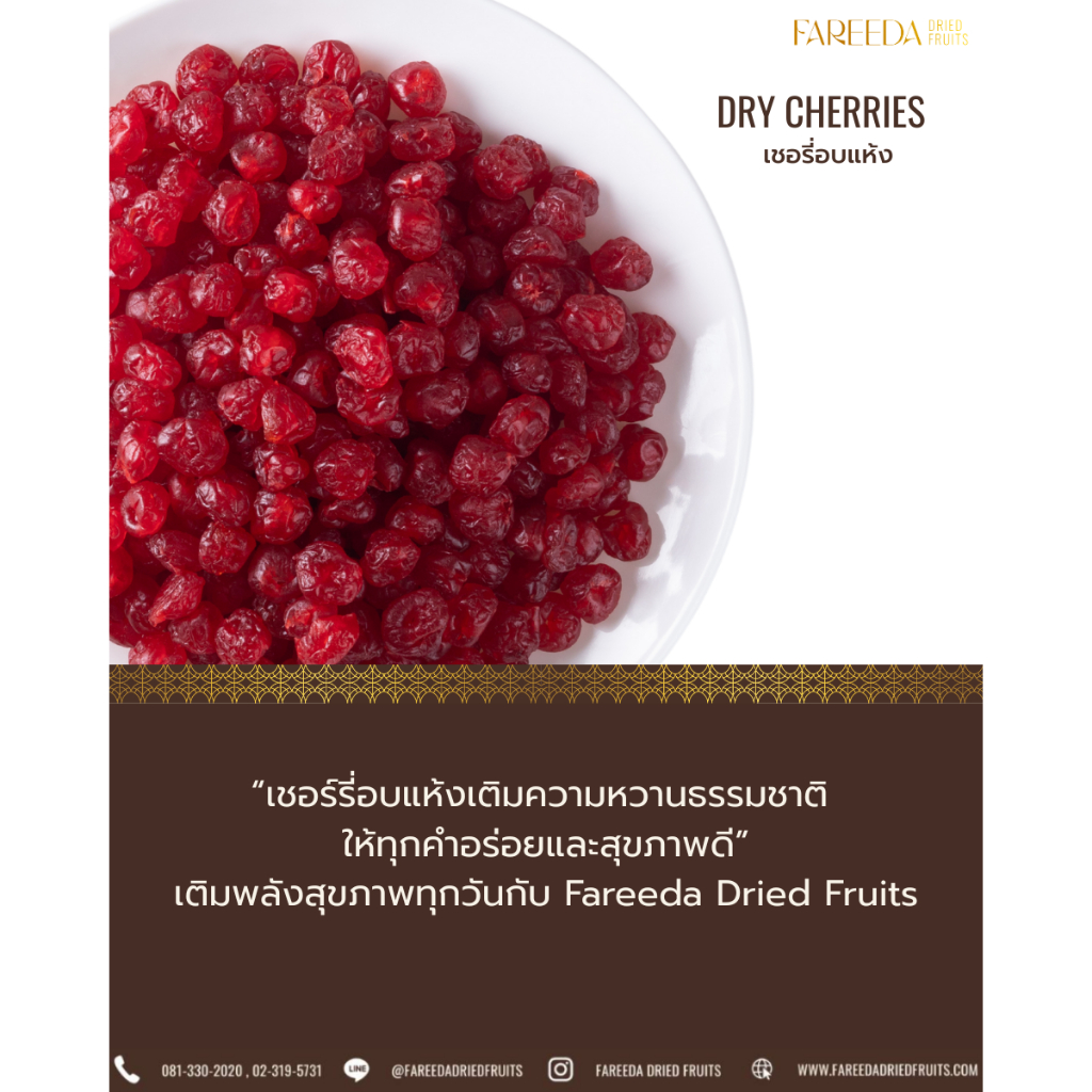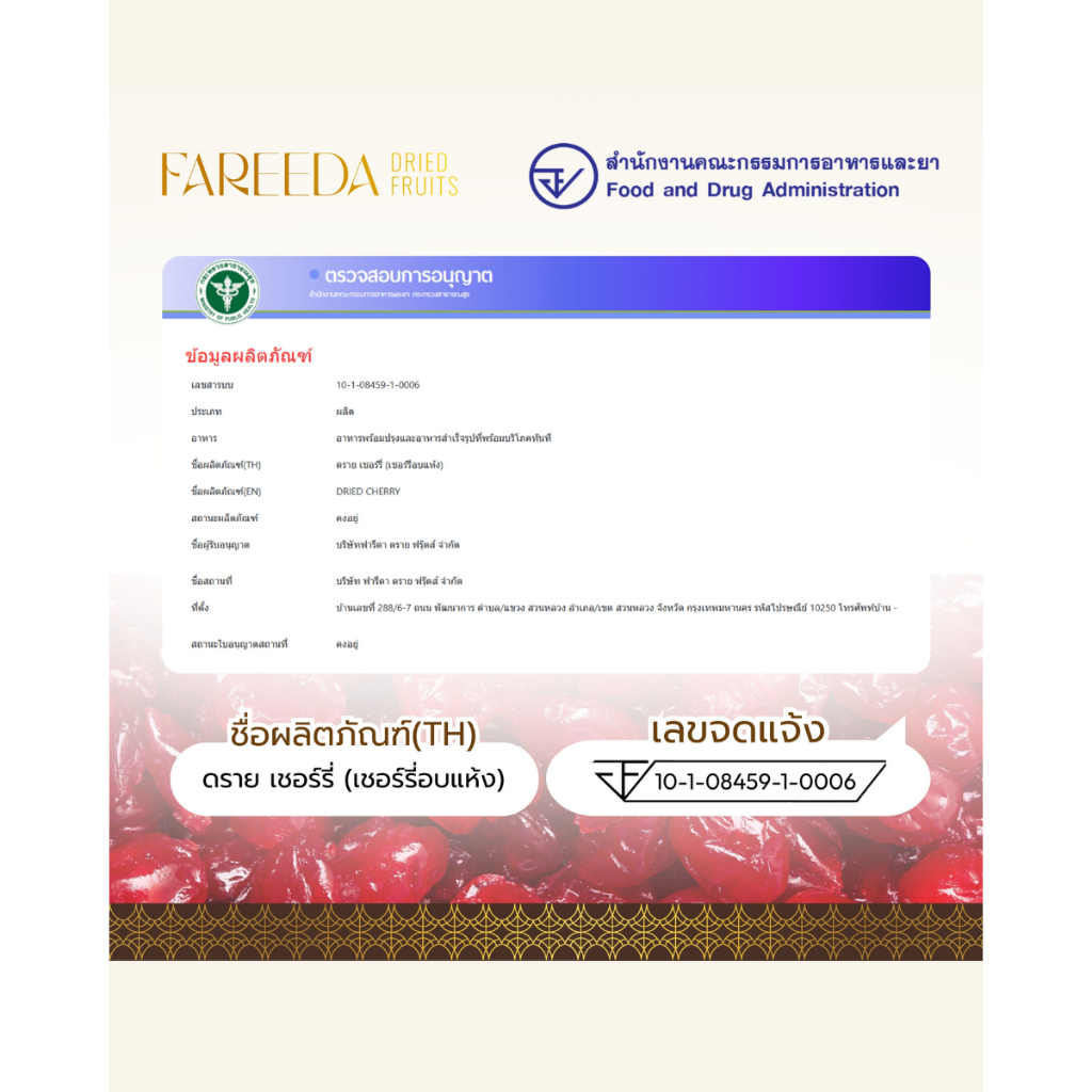 เชอรี่อบแห้ง Fareeda เนื้อนุ่มหนึบ รสหวาน หอมกลิ่นเชอรี่