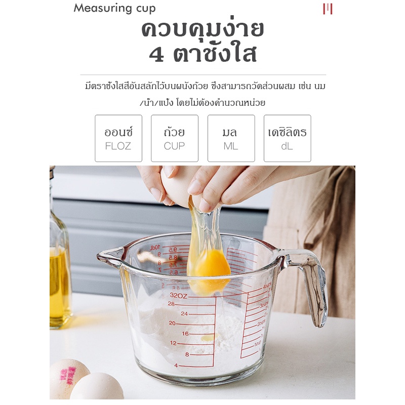 แก้วตวง 350ml 500ml 1000ml สามารถอุ่นได้ ทำจากแก้วอย่างหนา ทนความร้อนสูง ทนทาน