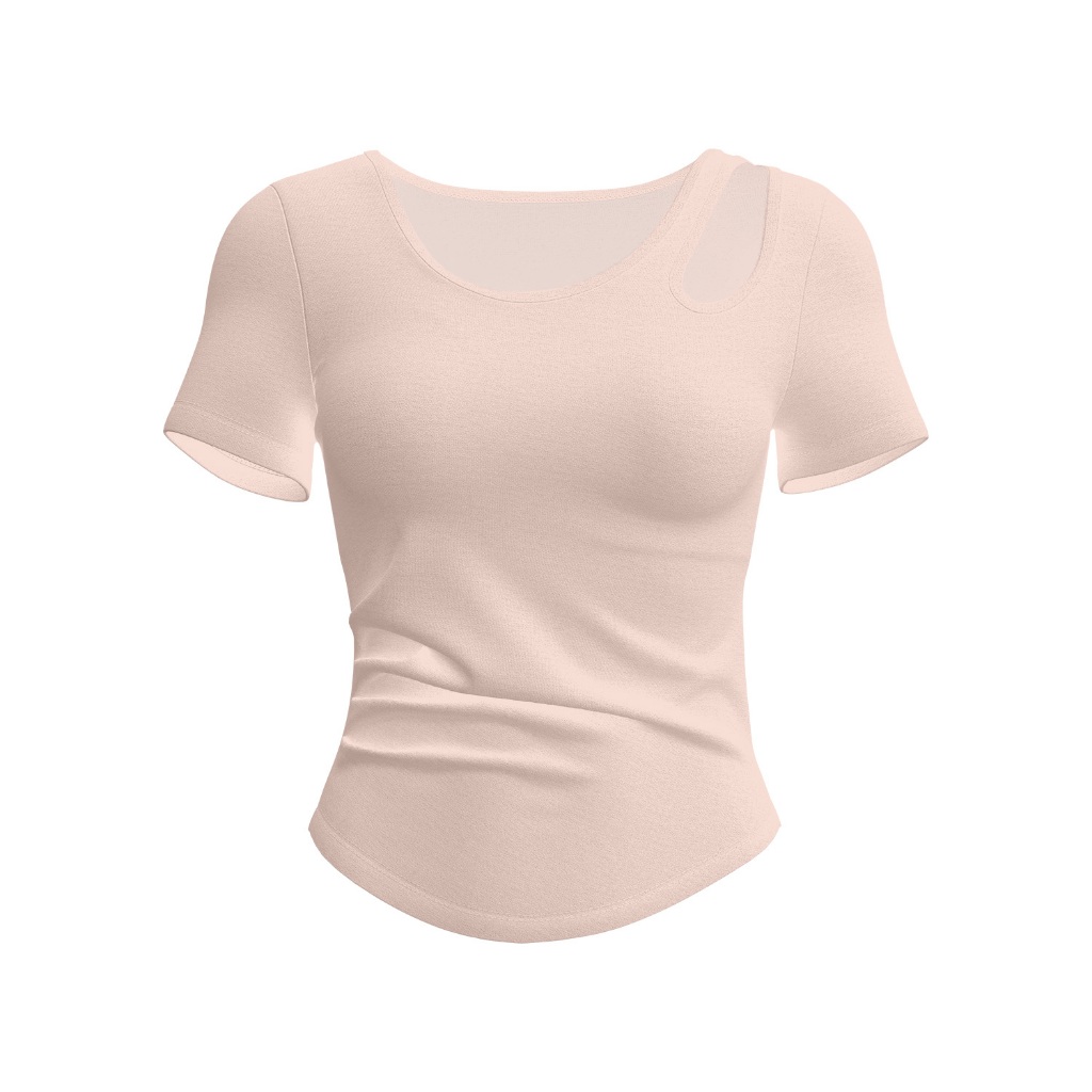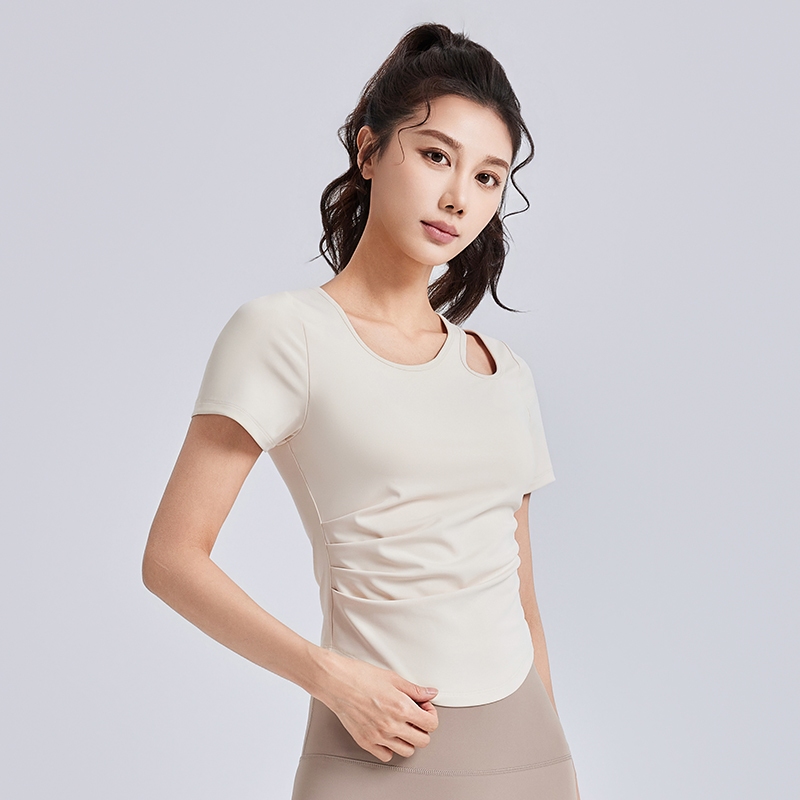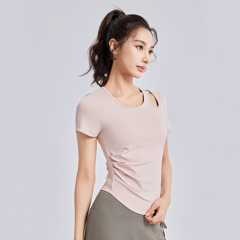 mvp sport ชุดกีฬาผู้หญิง ท็อปโยคะ สีพื้น คอกลม แขนสั้น แผ่นรองหน้าอกในตัว แขนสั้นโยคะกันกระแทกความแข็งแรงสูง
