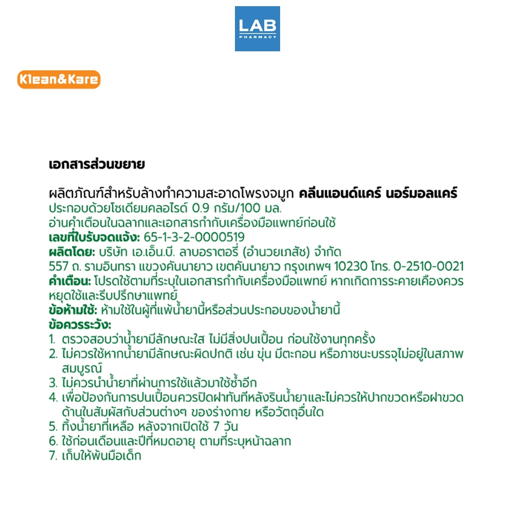 KLEAN&KARE Normal Kare - คลีนแอนด์แคร์ นอร์มอลแคร์ ผลิตภัณฑ์น้ำเกลือสำหรับล้างทำความสะอาดโพรงจมูก