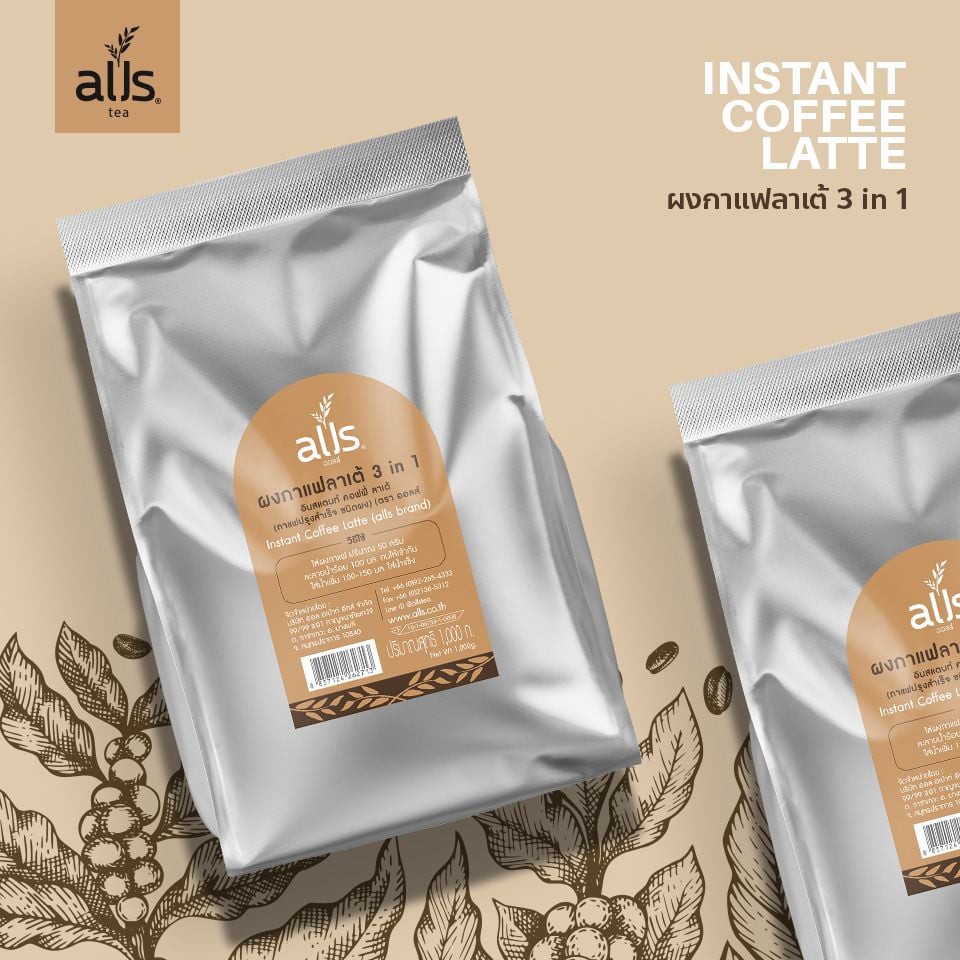 ผงกาแฟลาเต้ 3อิน1 (ตราออลส์) ขนาด 1,000กรัม และ 400กรัม